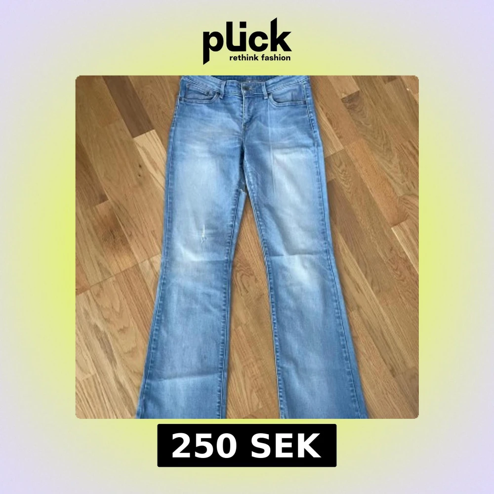 Supersnygga midrise bootcut jeans i färgen blå! Vintage och går inte att få tag på längre! Xs , midja: 36 cm, midjehöjd: 21 cm, innerben: 76 cm de är lite söndriga på inre lår