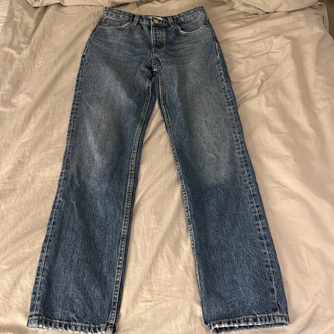Säljer mina ”straight mid rise jeans” då dom är för små för mig, tror dessa är slutsålda och säljer för 300kr💗