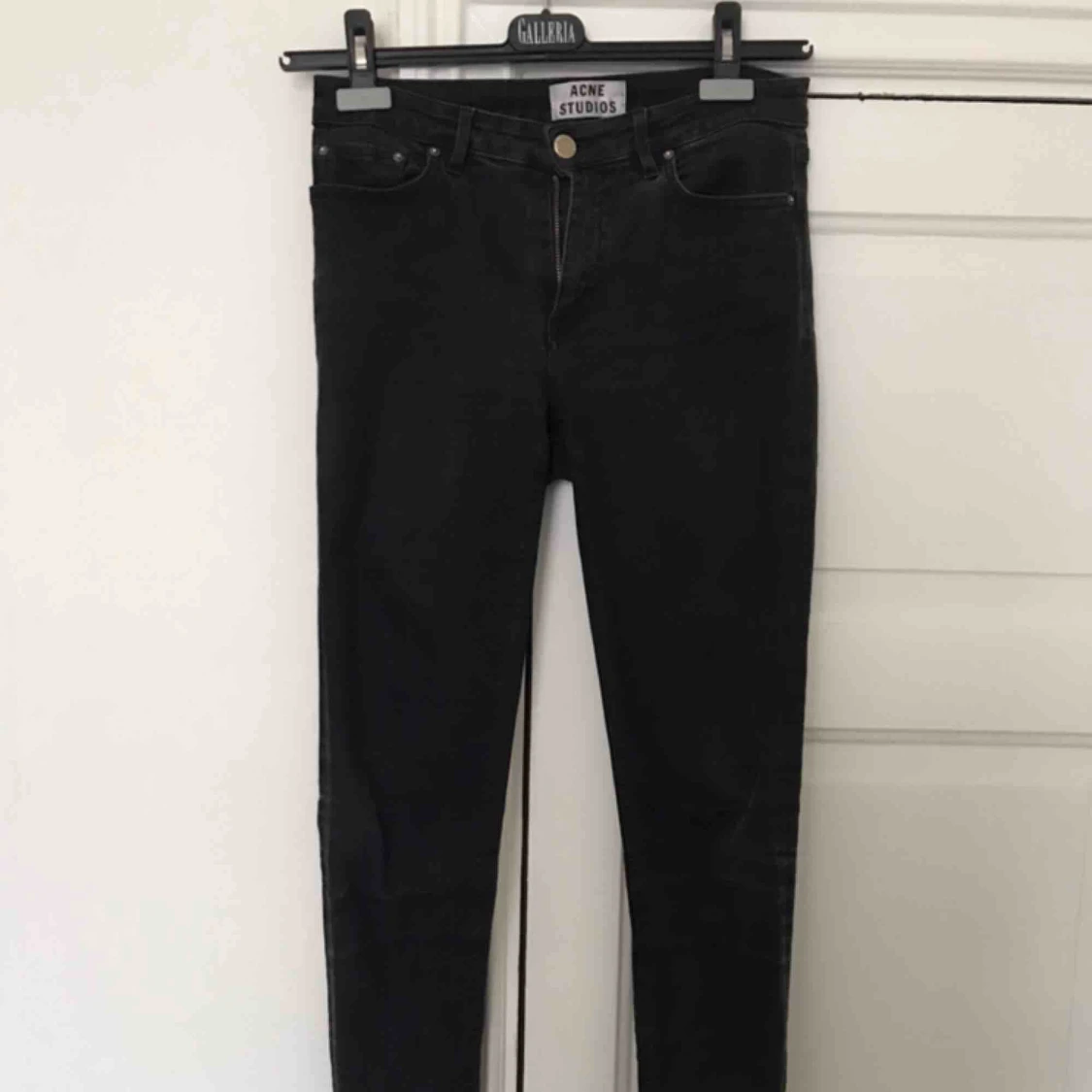 Svarta jeans från Acne i modellen skin 5 lacy black. Använda men finns inga hål eller slitningar, dock lite blekta i färgen. Strl 28/34, stretchiga. Kan hämtas i sthlm annars tillkommer frakt på 63kr spårbart