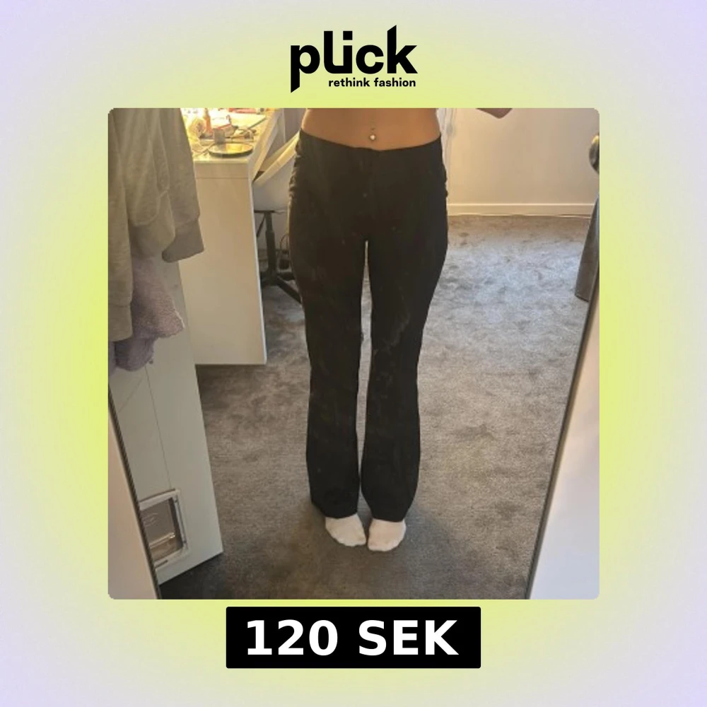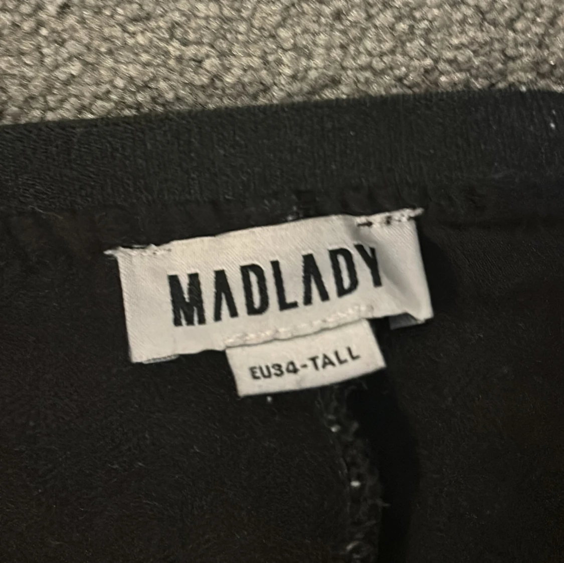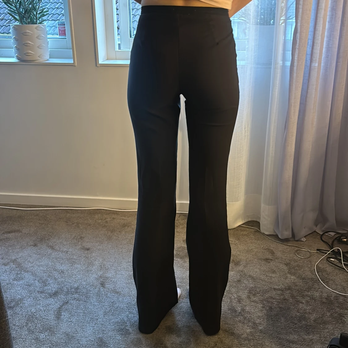 Säljer ett par svarta bootcut kostymbyxor från Madlady i modellen Tall. Byxorna har hög midja med utsvängda ben. Byxorna är i storlek 34-tall