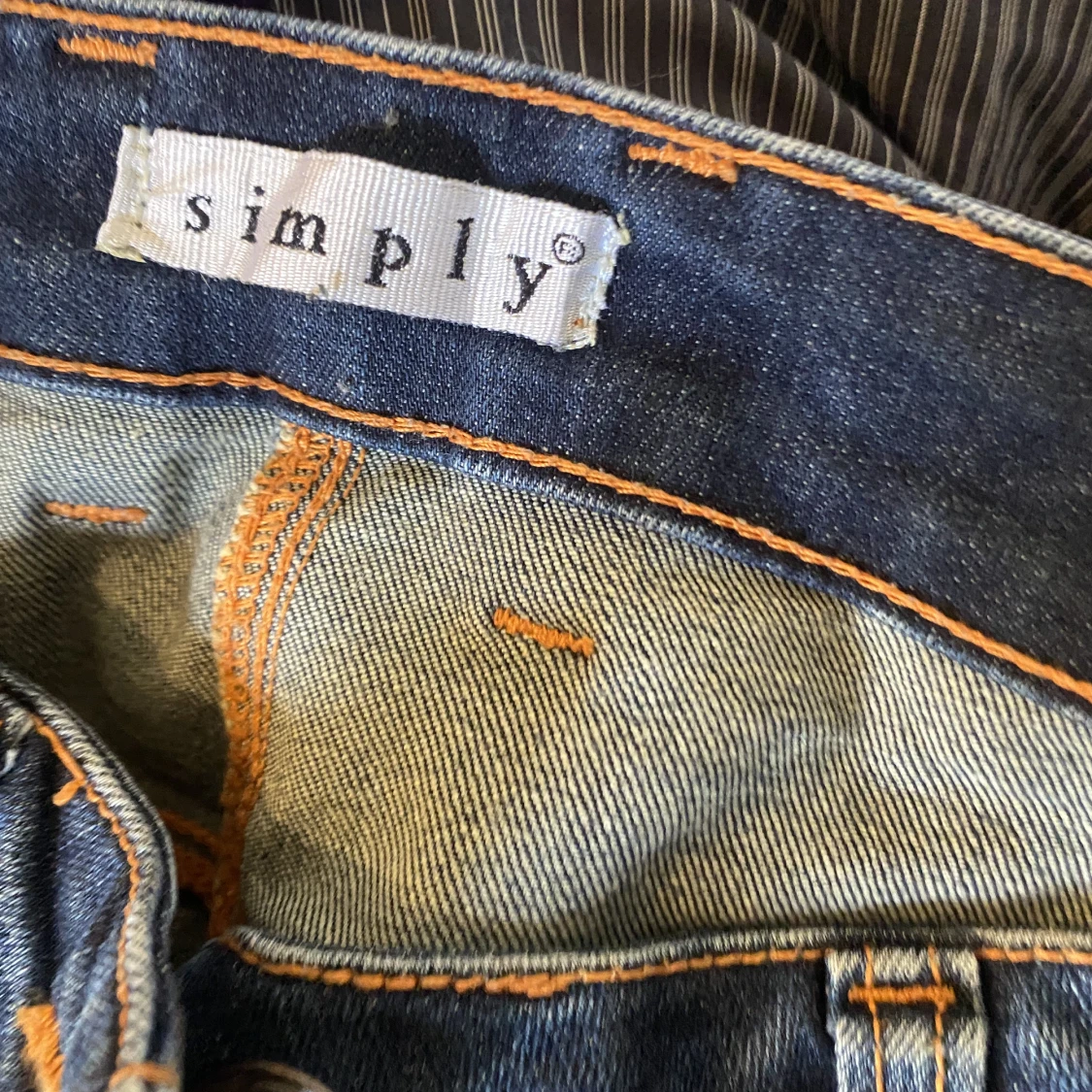 jeans med coola fickor fram. Person på bilden är 157 men byxorna är uppsydda så går nog att sprätta upp enkelt