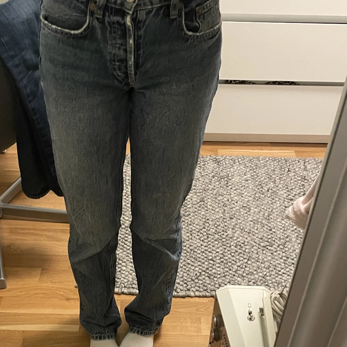 Fina och väl använda jeans ifrån zara❤️har ett par slitningar som syns på bilden men det är inget som syns när man har på sig byxorna❤️säljer då jag har tröttnat på de💓skriv privat för fler bilder