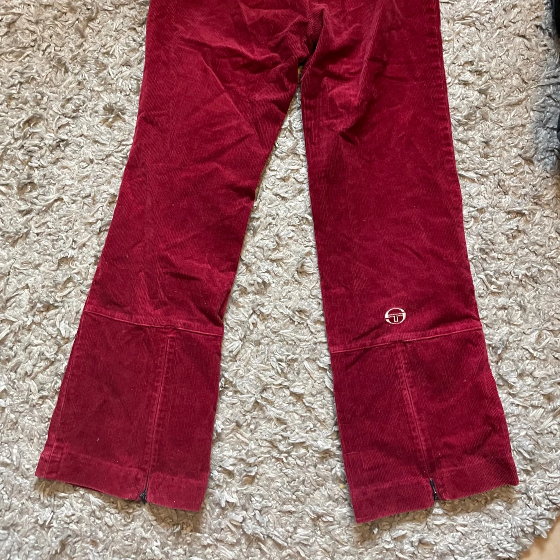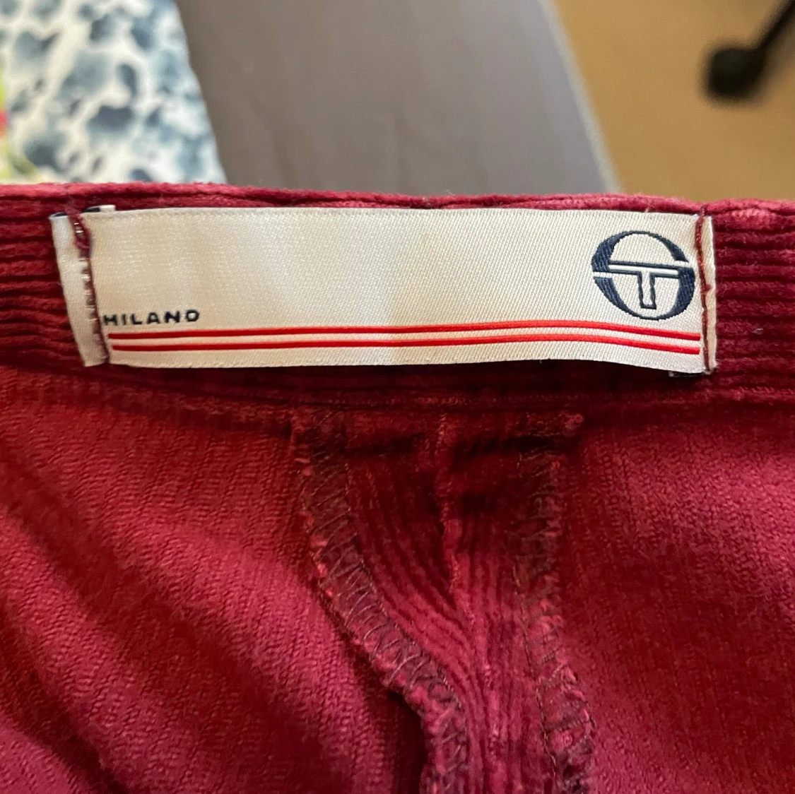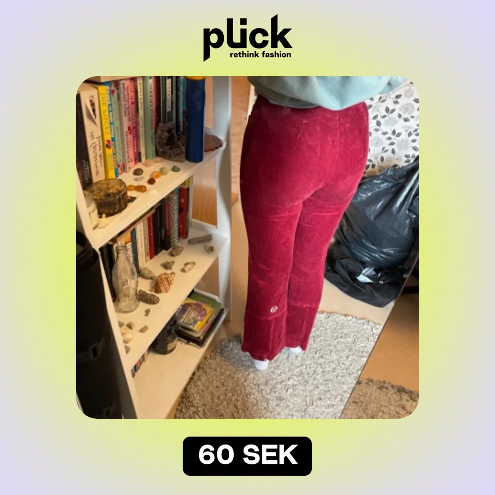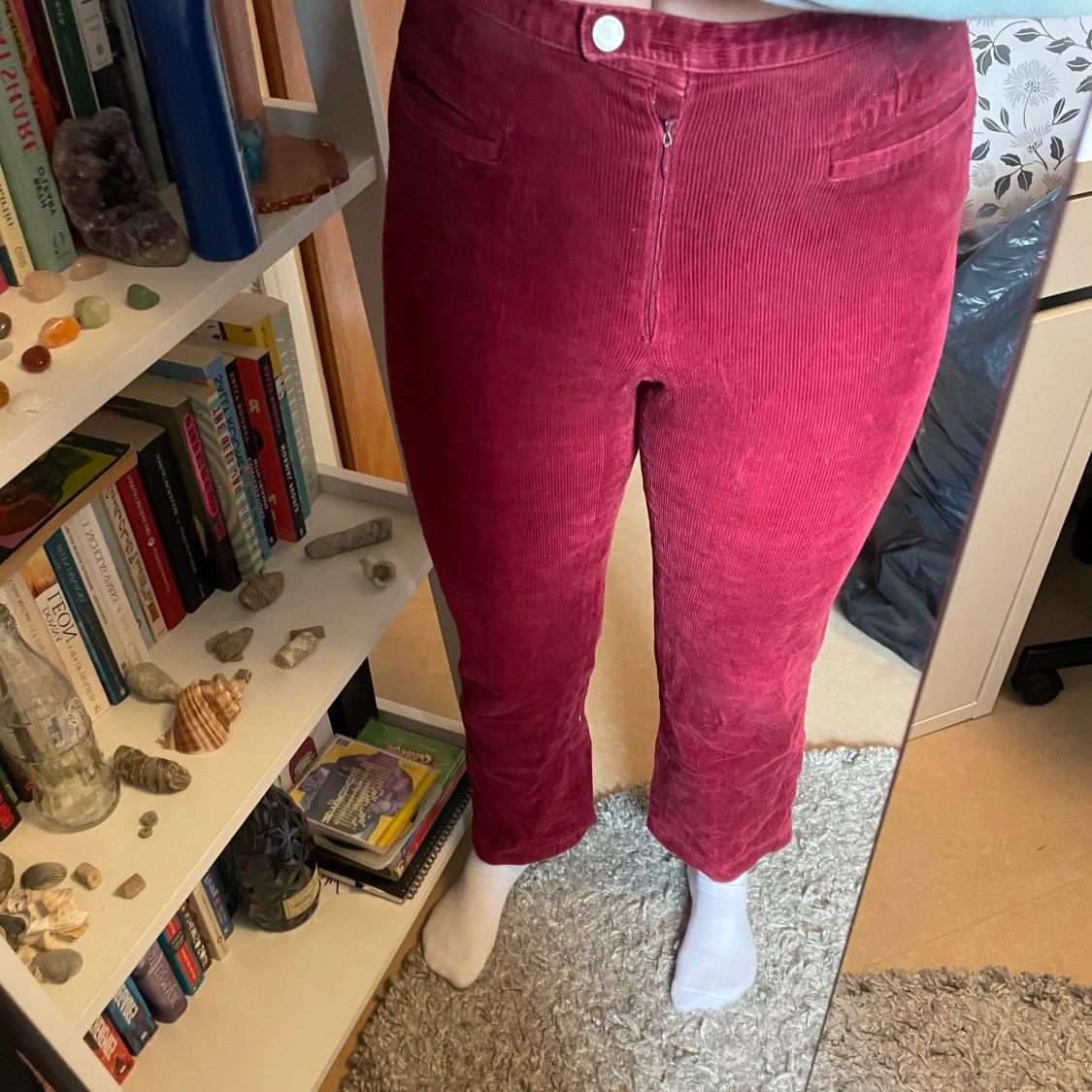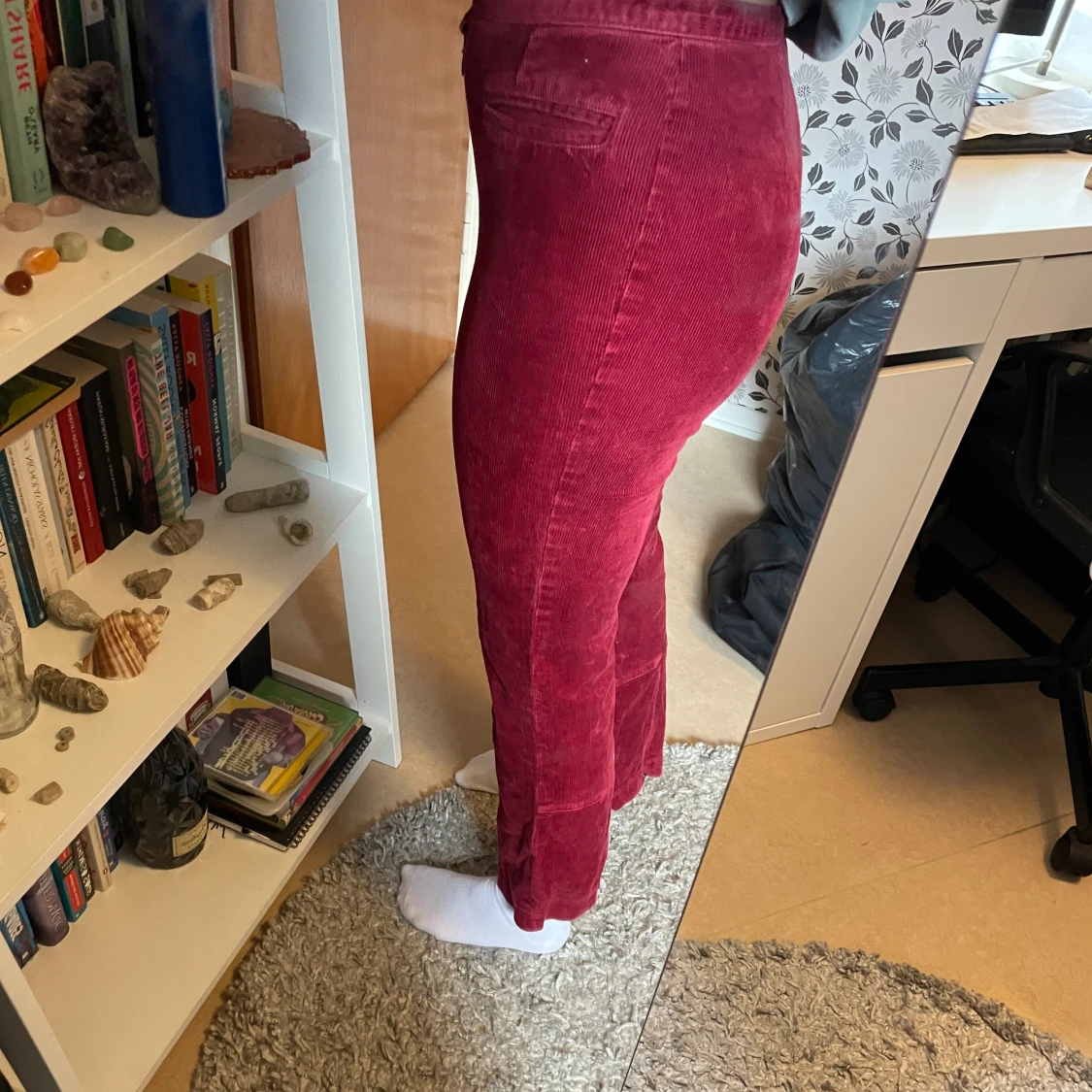 Manchesterbyxor i färgen röd. Funkar bra på 162cm. Milano brand. Bra skick. Dragkedja längst ner i benen. Storlek står ej men passar xs/s