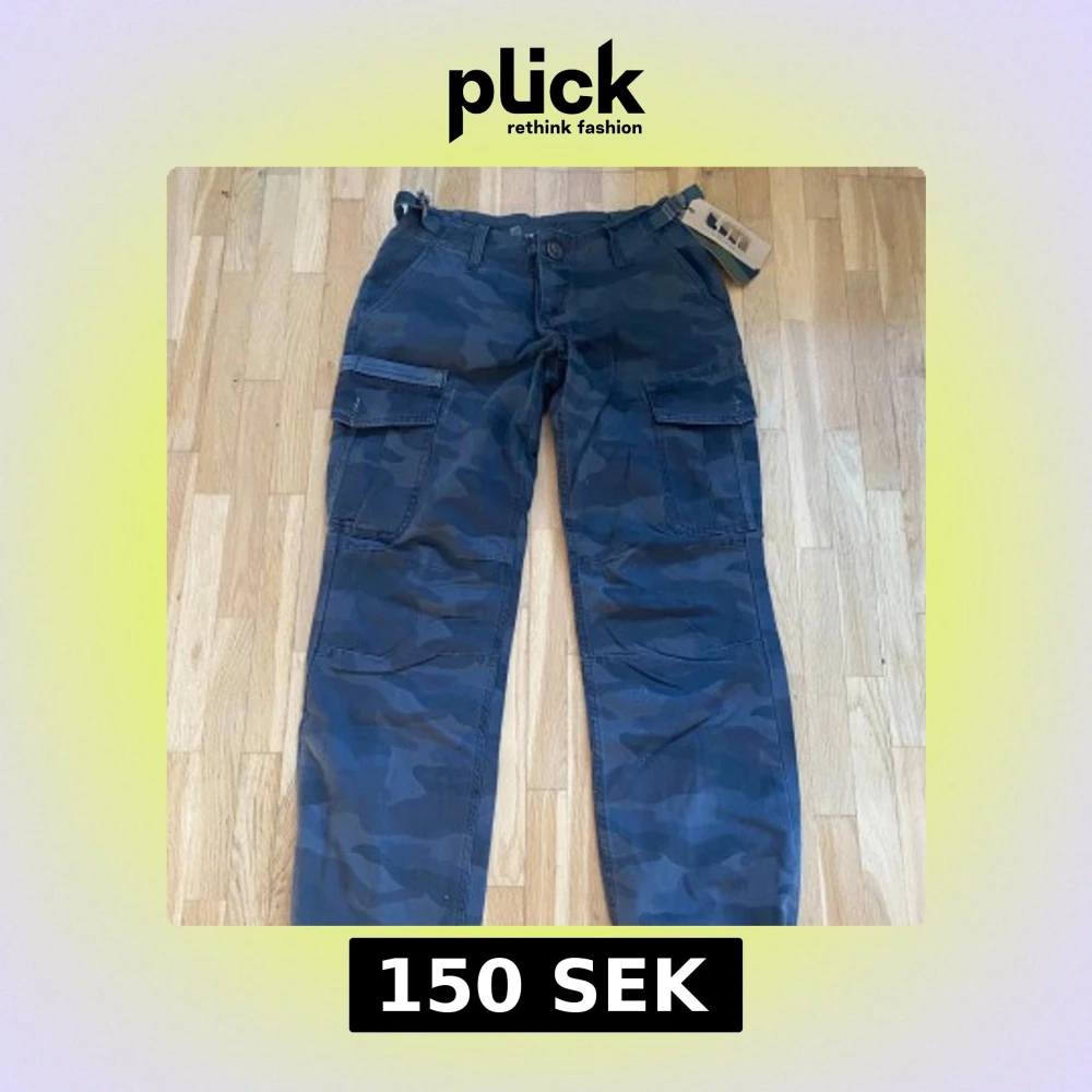 Ett par tvärfeta militärförgade cargobyxor. Thriftade från Vinted, oanvända då de var för små. Storlek L. Lappen kvar, ingen stretch. Skriv för fler bilder/mått. Läs gärna bion innan köp.