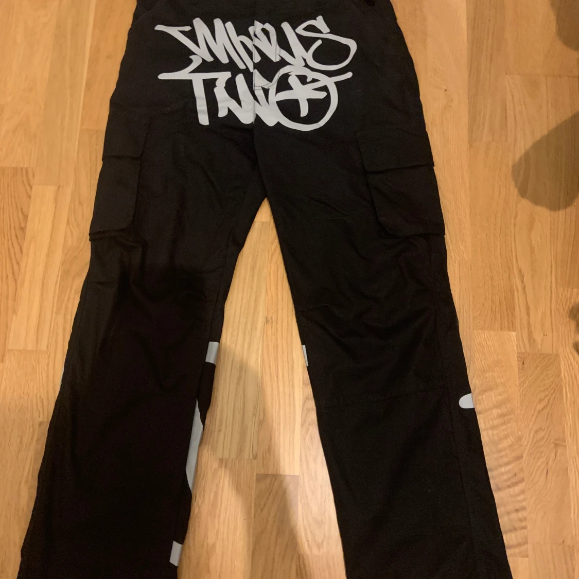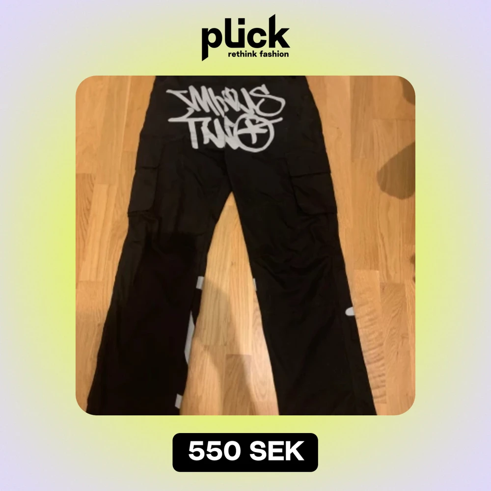 Säljer ett par snygga Minus Two cargo pants i y2k-stil, storlek M. De är tyvärr lite för stora för mig och passar därför inte längre.