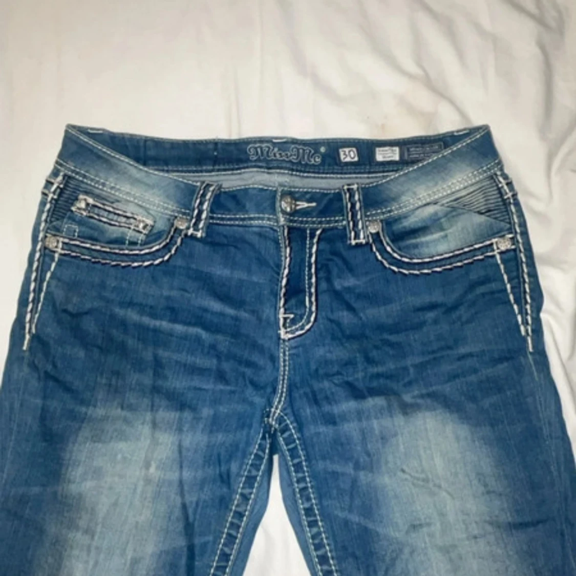 Säljer ett par blå jeans från Miss Me mef normal passform, raka ben och coola detaljer på fickorna. Säljer då dom e för stora å aldrig används längre, köpa här på plick, hör av dig vid frågor💕