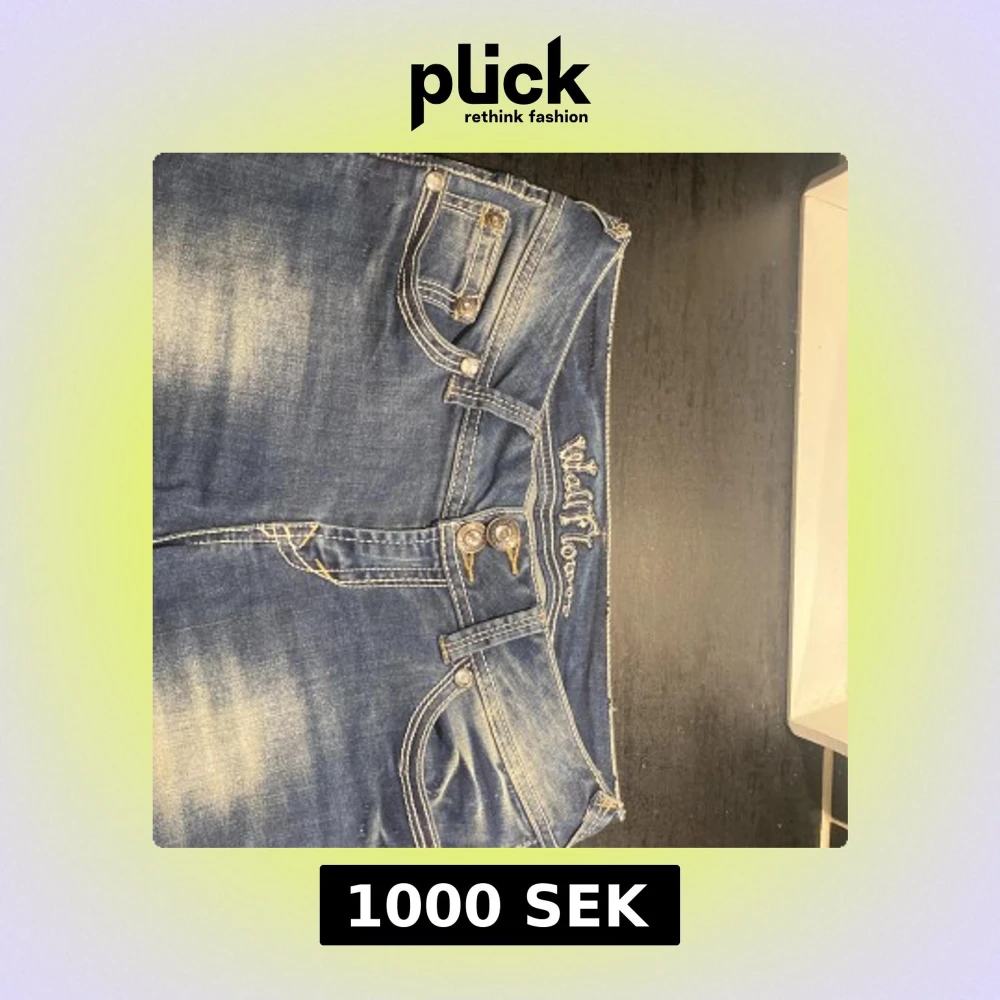 Snygga blå jeans från miss me med bootcut passform och slitna detaljer. Fickorna bak har broderier, nitar och spetsdetaljer. Jeansen har dubbla knappar fram och kontrastsömmar som ger en cool look. Perfekta för dig som gillar unika detaljer och klassisk denim.