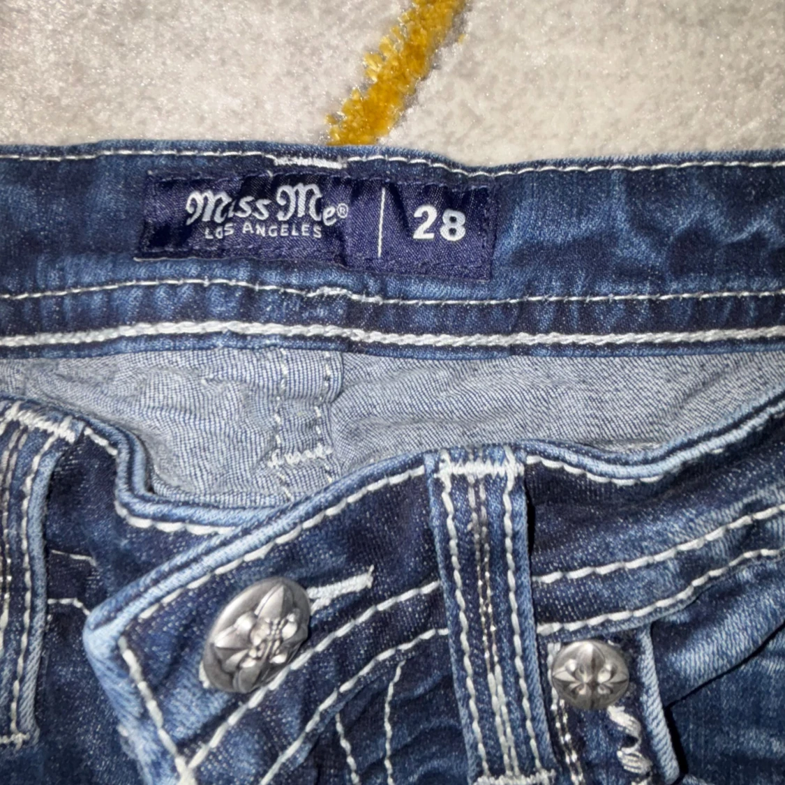 Miss me jeans har inte använts helt ny skick inget slitet eller så storleken är i 28 motsvarar M för fler frågor och bilder skicka gärna ett dm. ❣️