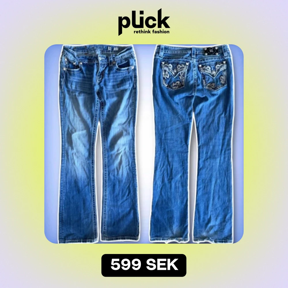 Ett par jätte fina bootcut miss me jeans💙 slitna längst ner vid benöppningen men annars inga problem! Hör av dig ifall du har frågor!😊