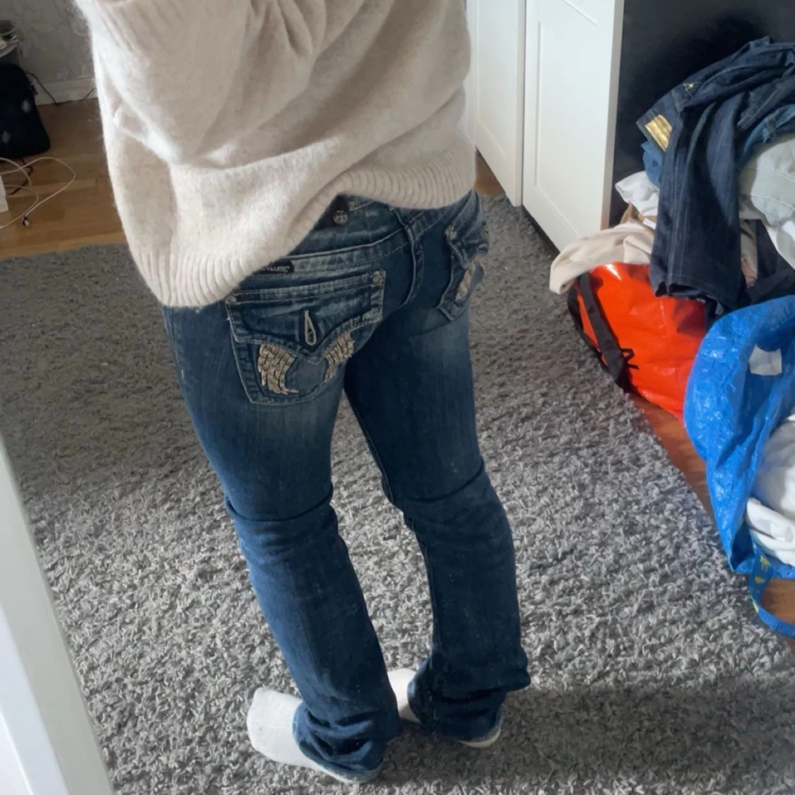 Säljer mina lågmidjade Miss me jeans I storlek w26. Använda sparsamt och inga defekter. Midjemått: 35, innerbenslängd: 81 💗säljer då de inte riktigt passade mig. Pris kan diskuteras. Straight model