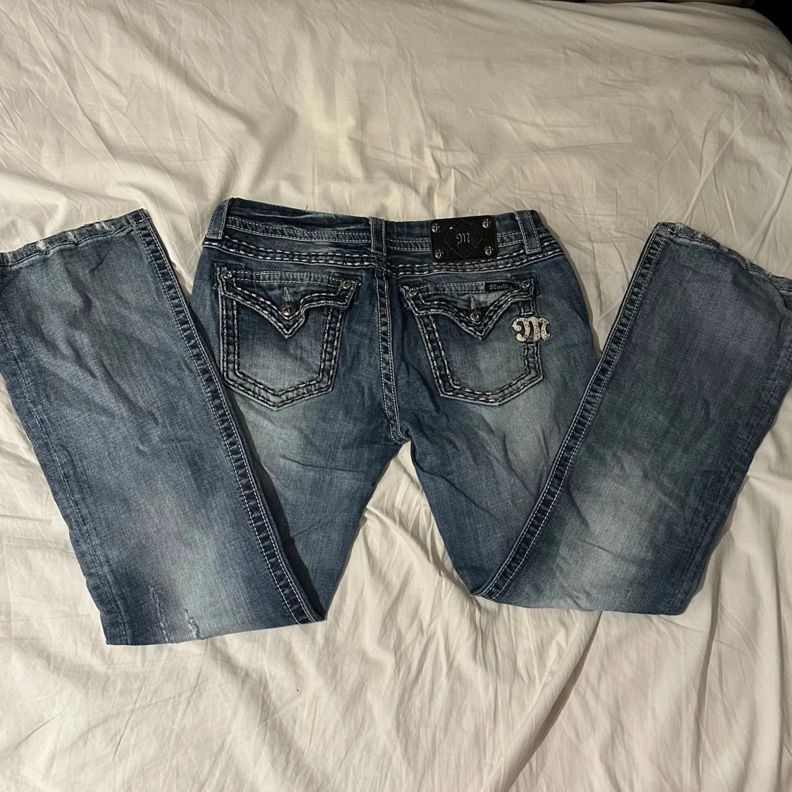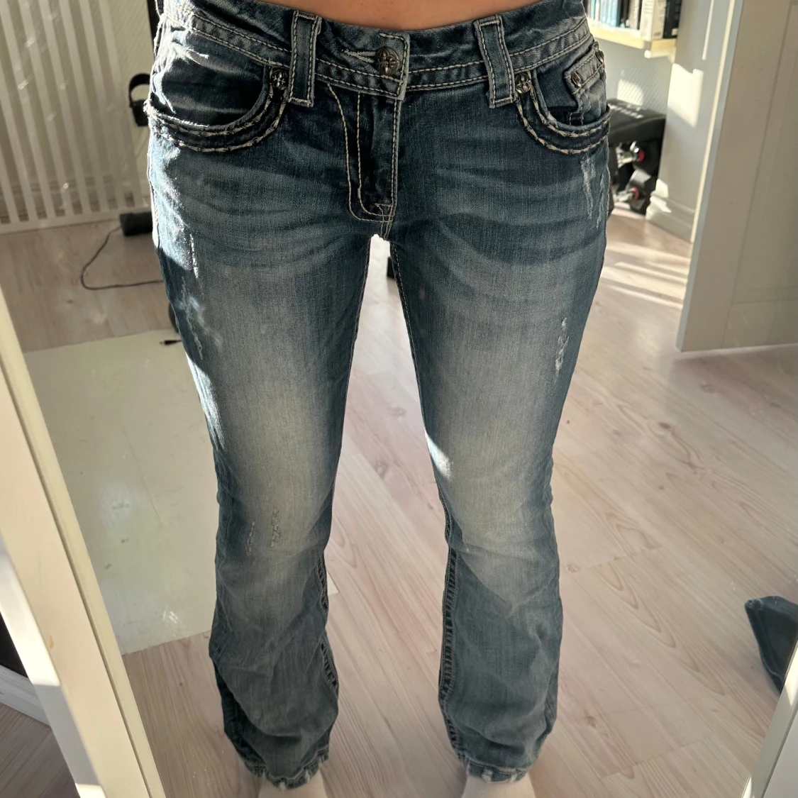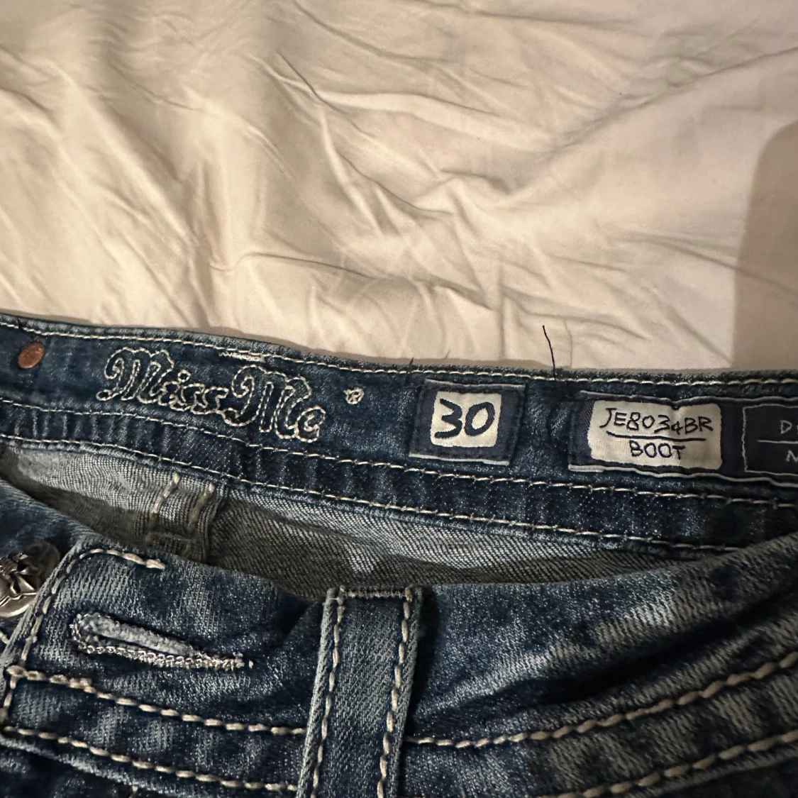 Supersnygga Miss Me jeans i bra skickđStorlek 30 och sitter perfekt pĂ„ mig som Ă€r en S/36/38 och 167 cm lĂ„ng. Vill typ inte sĂ€lja dessa för de Ă€r typ för snygga đ