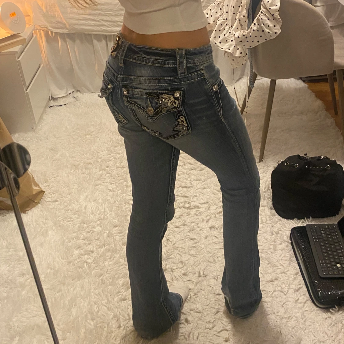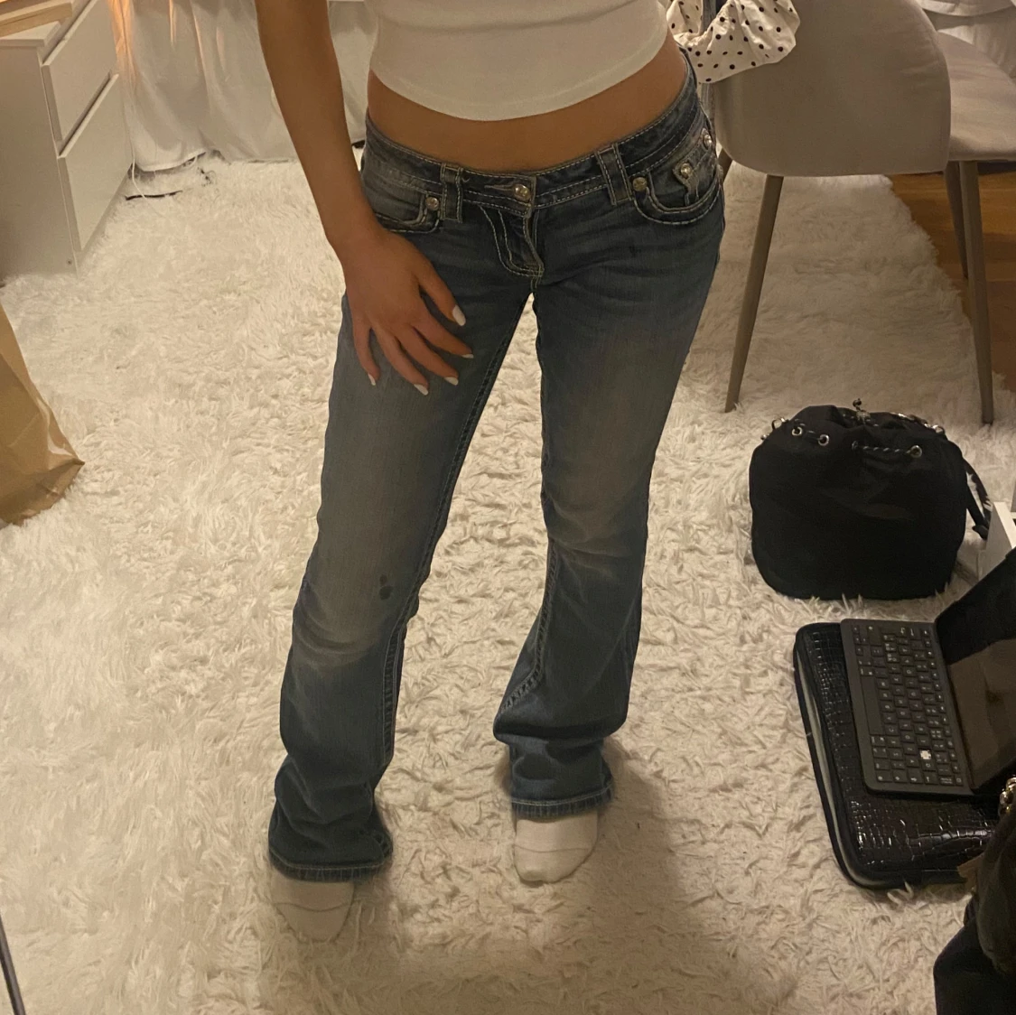 miss me jeans, strlk W25 - midjemått rakt över: 35 cm, innebenslängd: 80 cm! De är lite slitna längst ner men inget man tänker på❤️ pris går att diskutera!