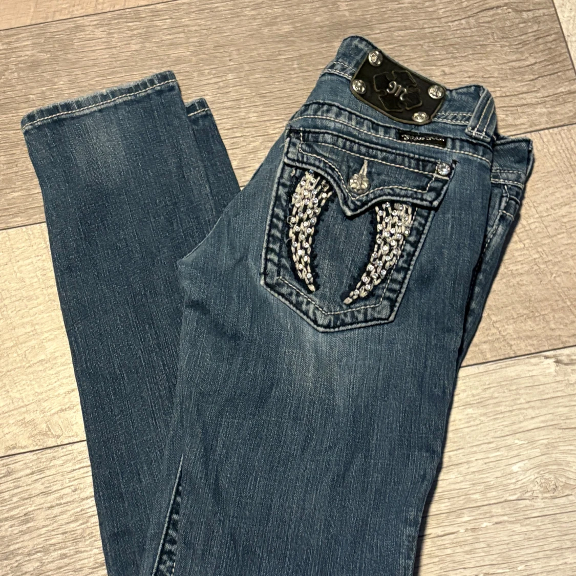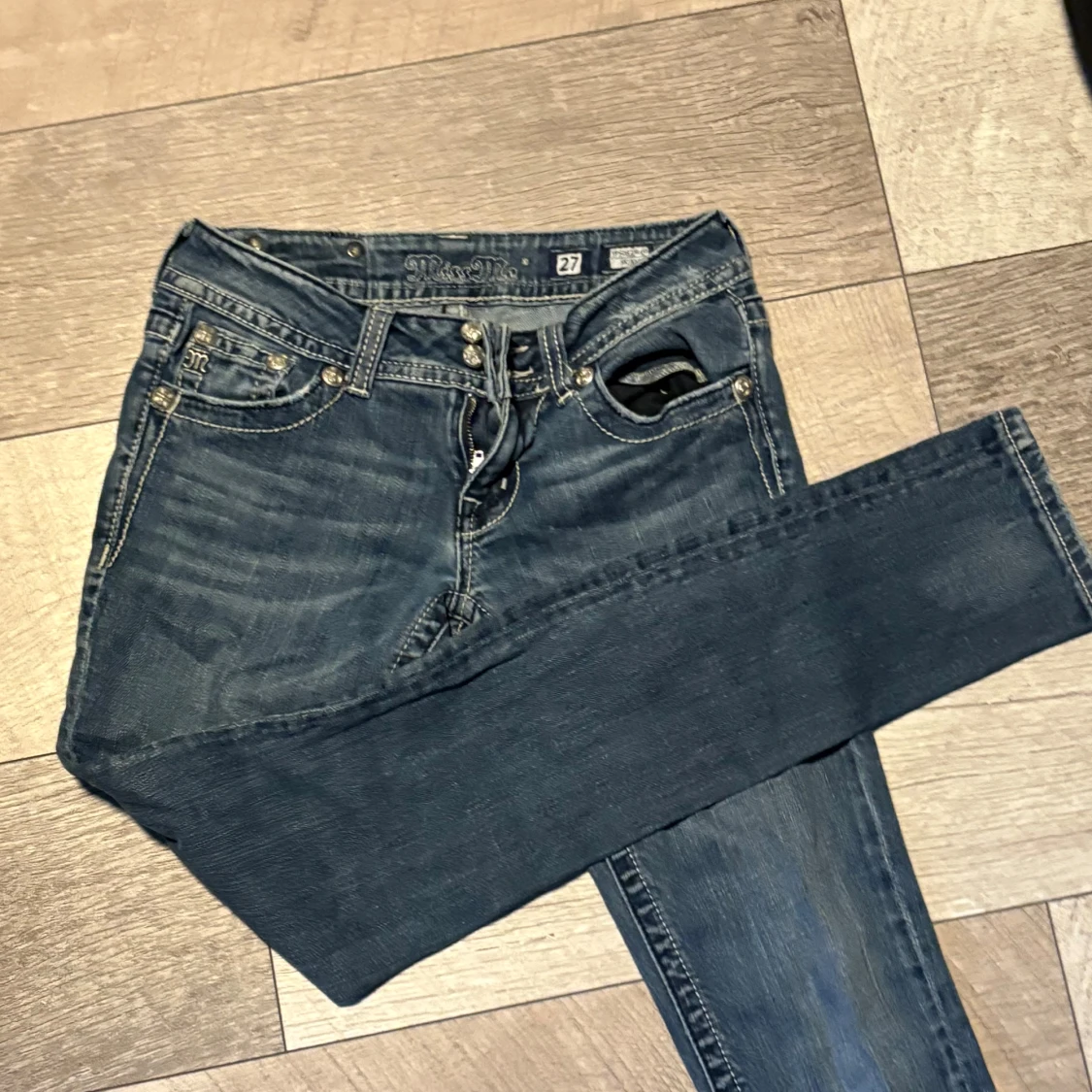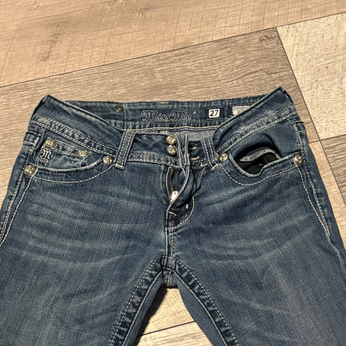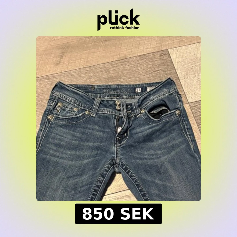 Om ni bor i Stockholm kan vi mötas istället och få billigare Snygga blå Miss Me jeans med låg midja och raka ben. Jeansen har coola strassdetaljer på bakfickorna, dubbla knappar och snörning fram. Klassisk denim med kontrastsömmar och metallknappar för en extra edgy look.