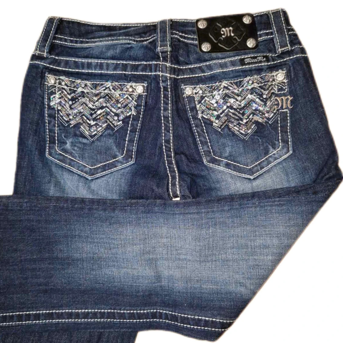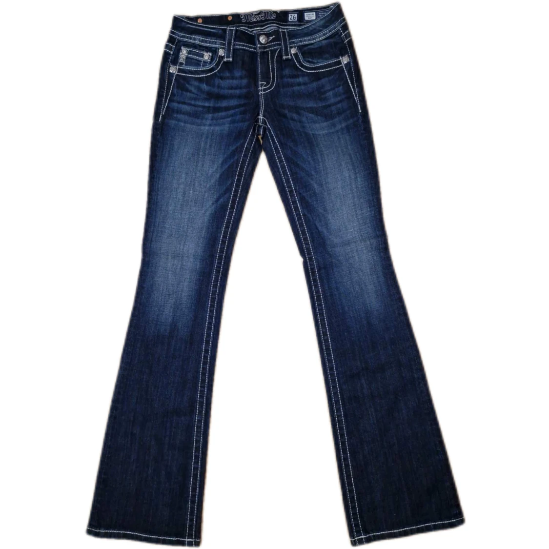 Miss Me jeans i modellen ”signature/boot” midjemåttet rakt över är 38cm. Ytterbenet 105cm och innerbenet 86cm. Jeansen är som nya. Kontakta vid intresse!