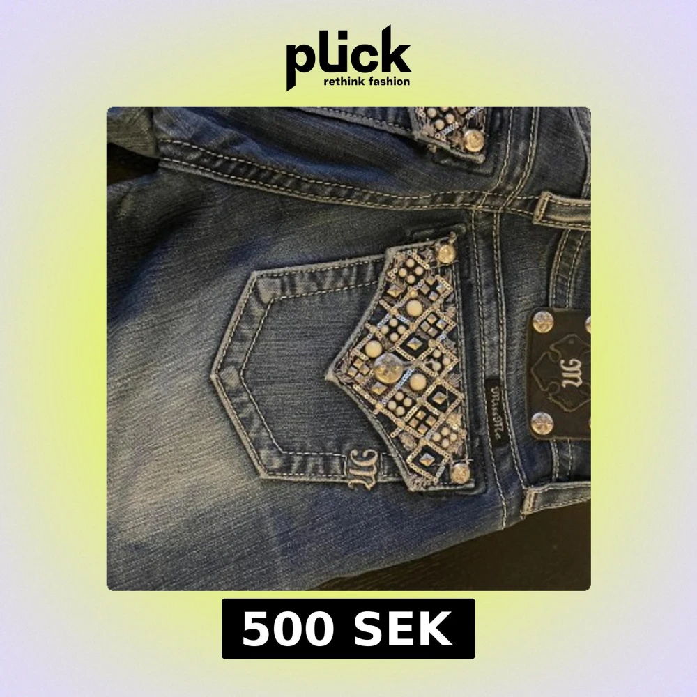 Snygga blå skinny jeans från Miss Me med coola bakfickor dekorerade med pärlor och nitar i silver. Jeansen har låg midja, klassisk femficksdesign och är tillverkade i stretchig denim för en tight passform. Perfekta för dig som gillar statement-detaljer!