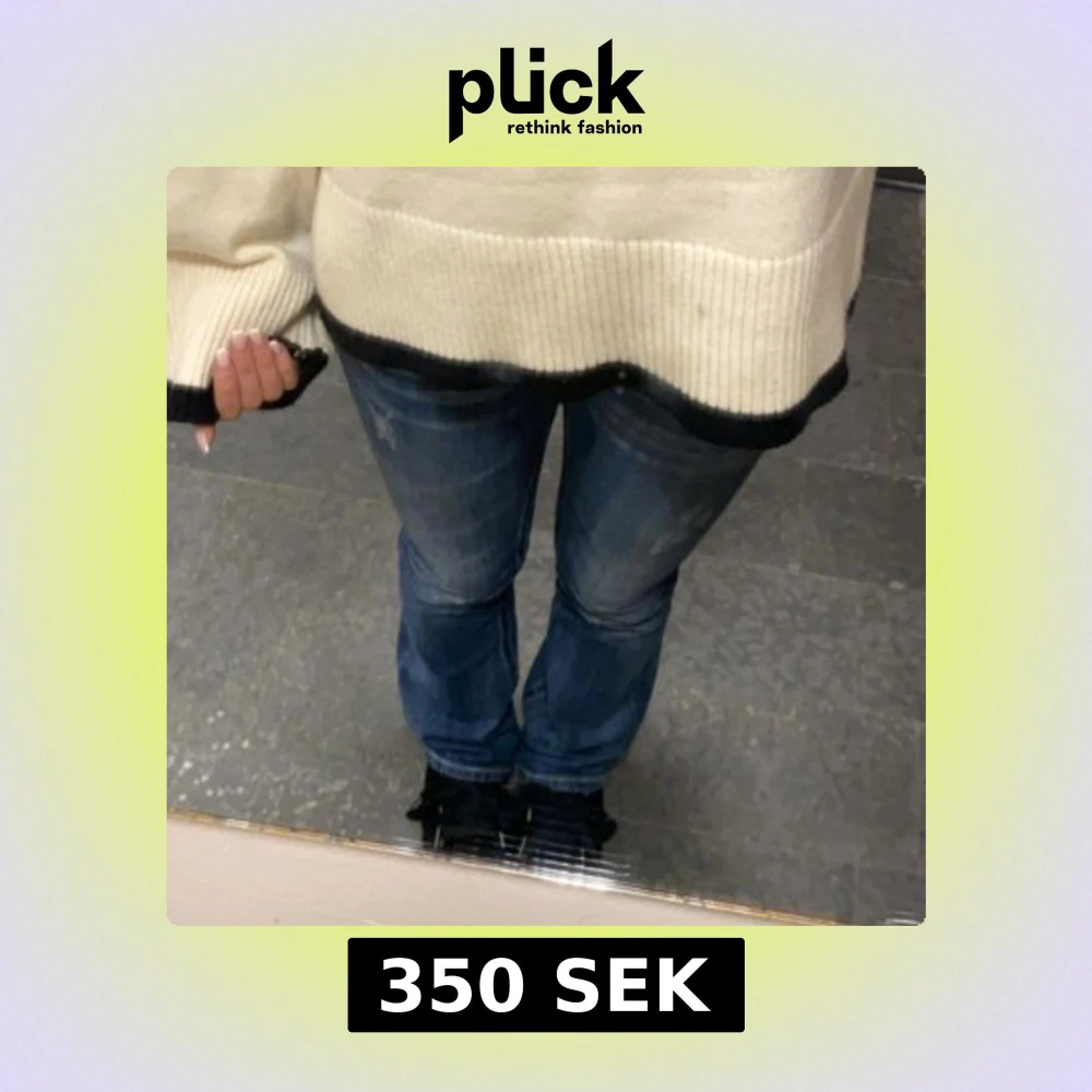 Snygga blå jeans med bootcut och låg midja, knapp fickor och dem är ifrån miss me.