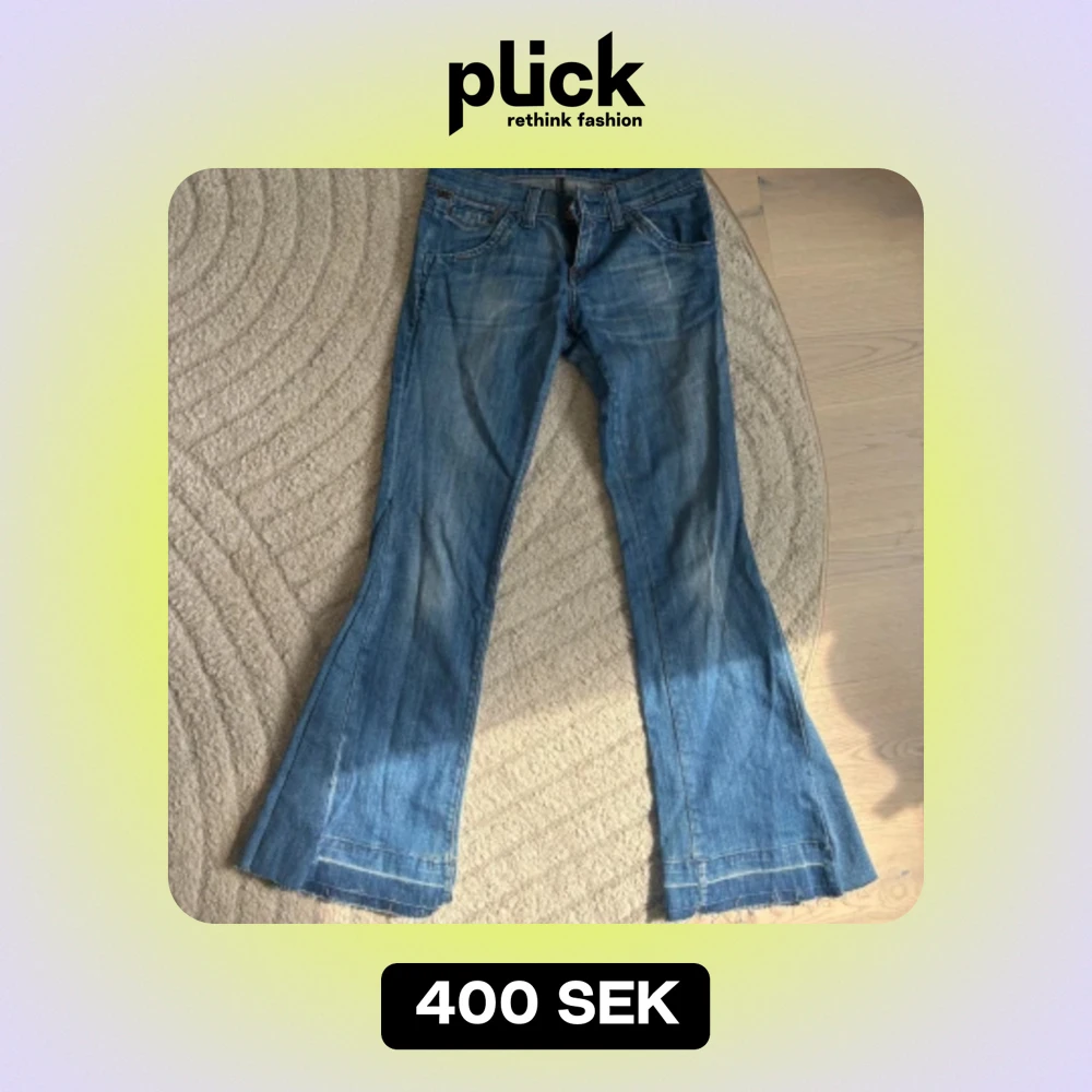 Säljer dessa jättesnygga lågmidjade miss sixty jeans då de tyvärr är för små för mig i midjan. Har sprättat upp stygnen längst ner för att få de längre och sytt de mer bootcut. Midjemåttet är 37 cm och innerbenslängden är 76 cm💕