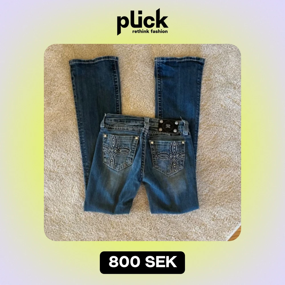 Super fina miss me jeans! Bootcut och lågmidjade, i bra skick, lite slitna längst nere! Midjemått: 34cm, innerben: 83cm, ytterben: 100cm. Använd gärna köp nu🤣