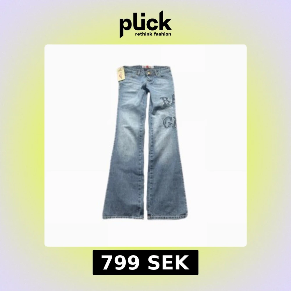 Så snygga jeans med coola detaljer.🤍Midjemått:37cm innerbenslängden:82. lappen är kvar så helt nya🌷bilder från tjejen på plick som jag köpte de av men har aldrig själv använt de o de har inga defekter.💕Pris kan diskuteras 🌸