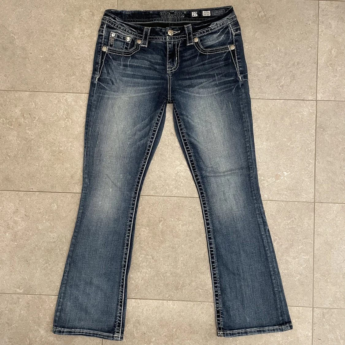 Ett par lowwaist bootcut miss me jeans i fint skick utan fläckar. Midjemåttet är 39cm (tvärs över) och innerbenslängden är 69cm. Tryck gärna på köp nu!