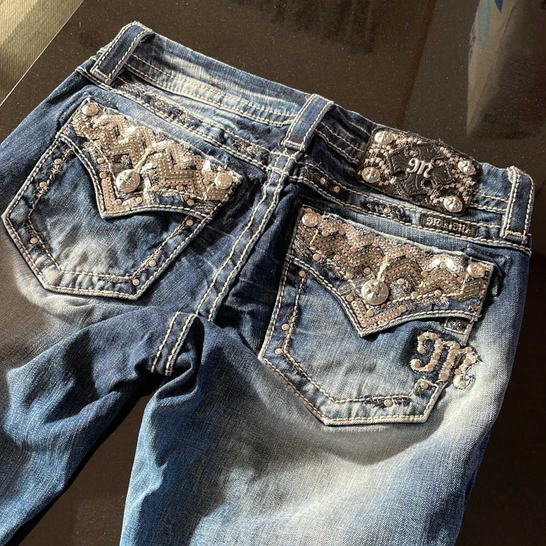 Dessa behöver en ny ägare! Skitsnygga blå Miss Me jeans med bootcut och låg midja! Dem har jättefina bakfickor! Jättebra skick och säljer då de inte kommer till användning. Bild 3 är lånad! Skriv gärna vid frågor.🩷💕öppen för rimliga prisförslag
