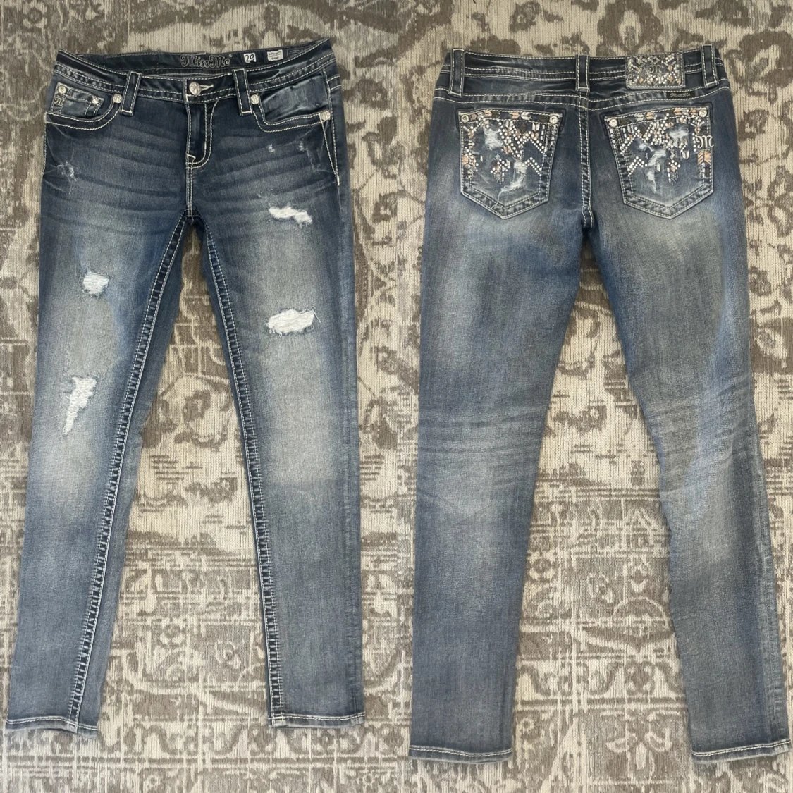 Miss me jeans som är lågmidjade och skinny/straight fit. I fint skick utan fläckar❤️Midjemåttet tvärs över är 40cm och innerbenslängden är 75cm💗 Jag är 168💓 Tryck gärna på köp nu❤️