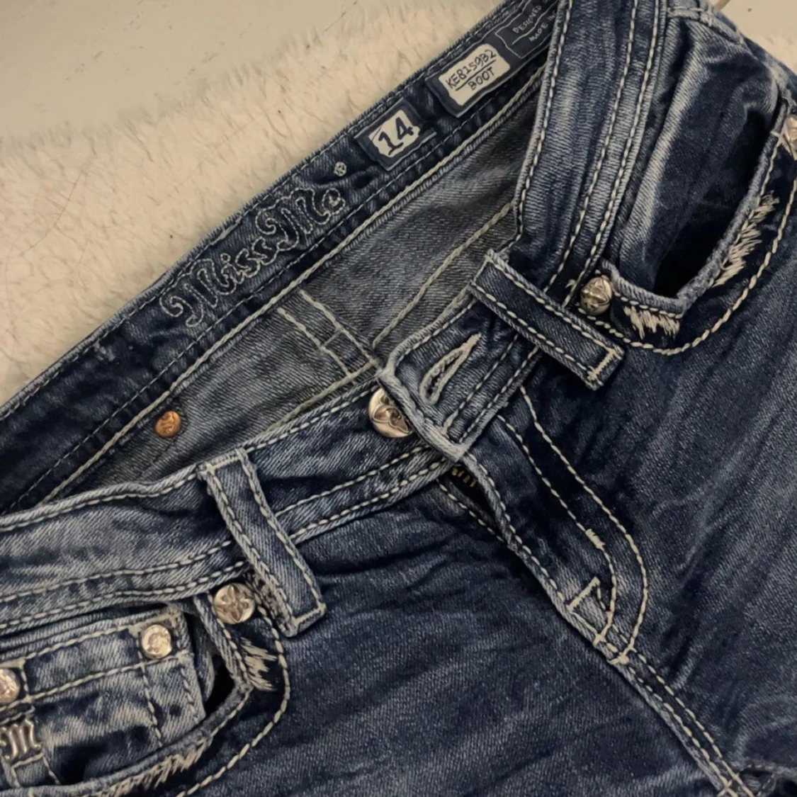 Säljer ett par sjukt snygga miss me jeans som tyvärr blivit för korta för mig. Dom är sen tidigare köpta från A2 vintage och fläckarna samt de två borttappade knapparna (se bild 5 och 3) var så redan innan jag köpte dem. Midjemåttet är 34! Helt perfekta nu till hösten!!🙌🏼🍁Skriv vid fler frågor!