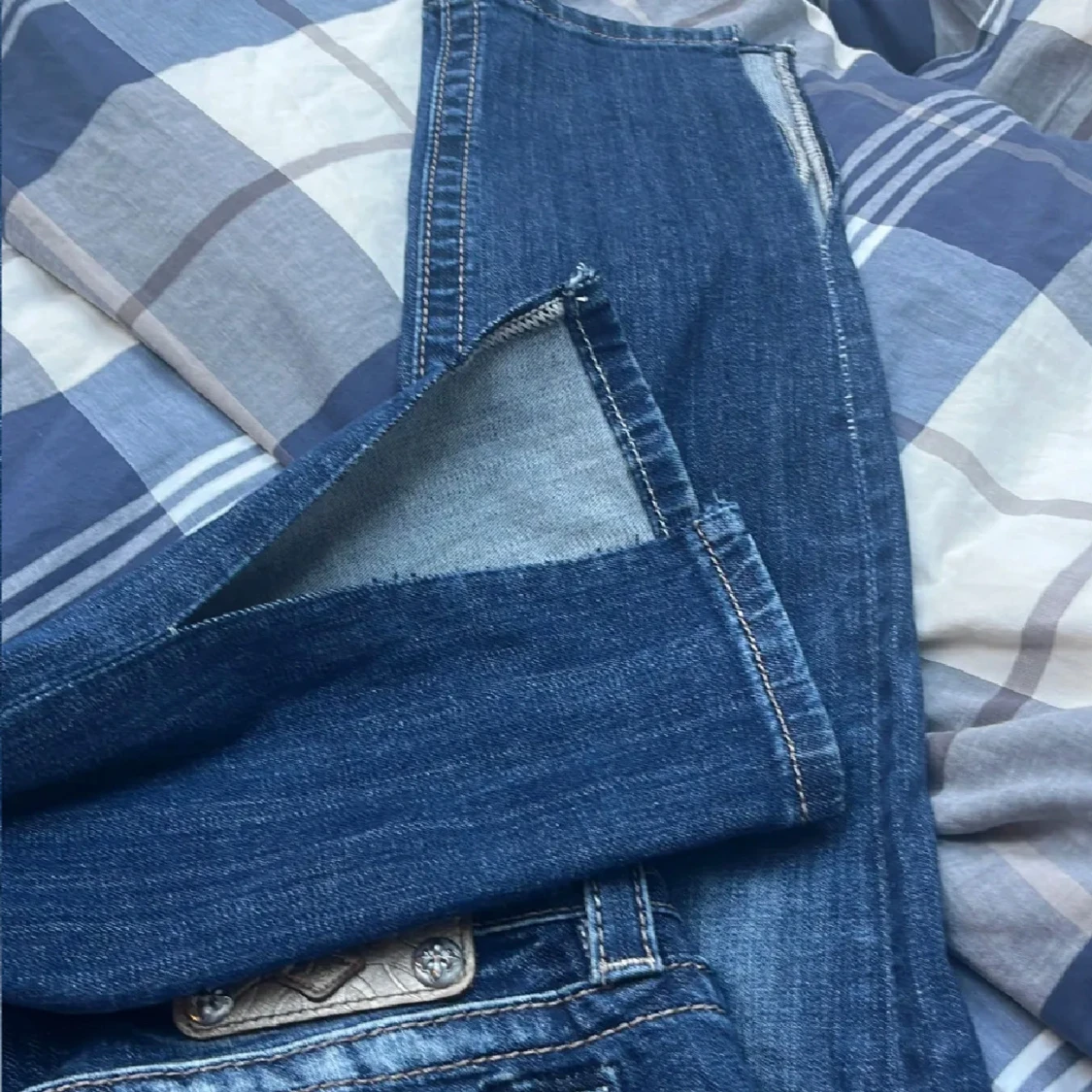 Säljer för att dem e för stora, midjemått rakt över 40cm, innervenslängd 77cm. Dem har sluta nere vid benet