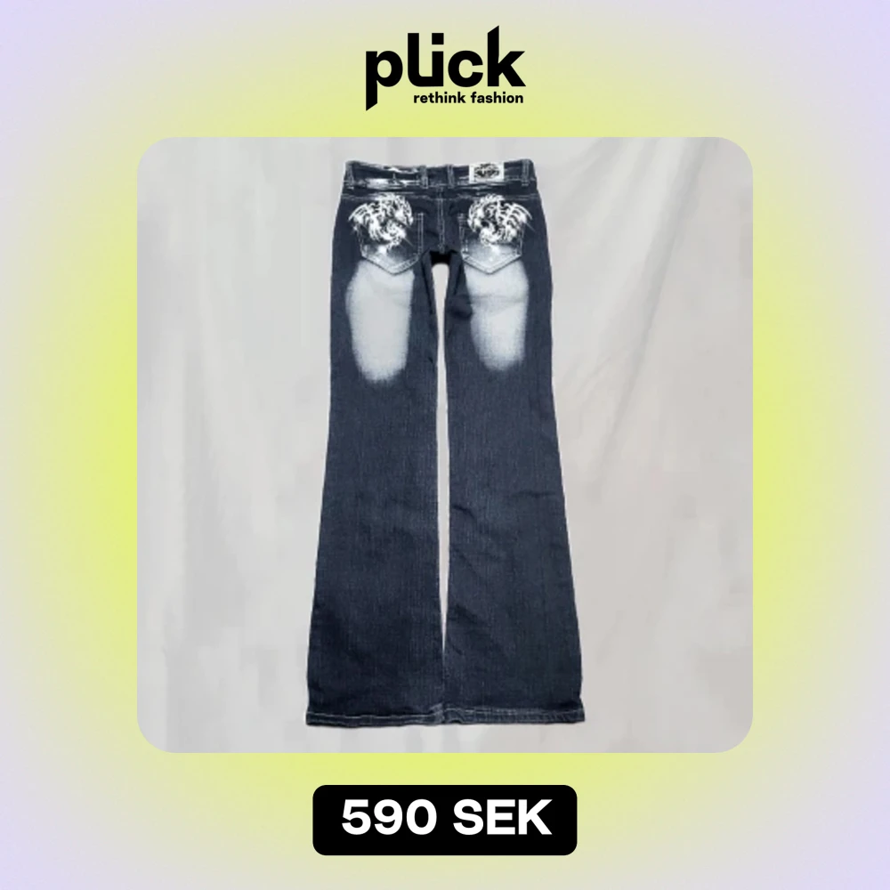 Midja:77 innerben:80 Lågmidjade jeans med rhinstones. "Young age" (crazy age på lappen men vet ej äkthet). Sitter ganska rakt. En del stenar saknas. Verkar vara uppsydda vilket är något ojämnt. Svarta på lappen bak har gått bort. Överlag bra skick!🤍