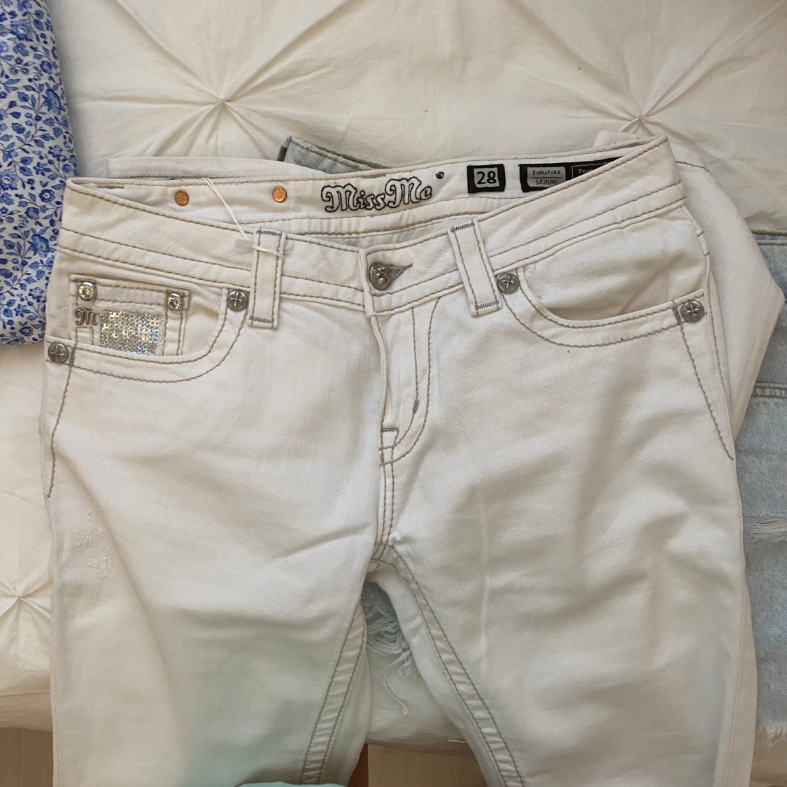Köpa på Sellpy för ca 700kr, har själv aldrig använt dom🙂De är skinny i modellen och low-waist! Personligen skulle jag beskriva dom som nyskick, då de ännu ser otroligt fräscha ut😉👌🏼 ge gärna prisförlag 🙏🏼😄