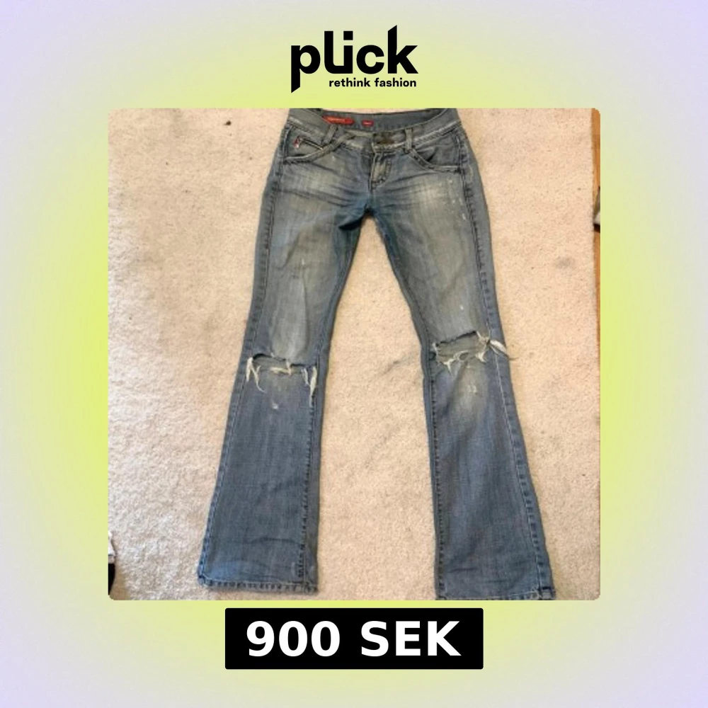 Jätte fina miss sixty lågmidjade bootcut jeans med hål i. Midjemått: 38 innerbenslängden: 82. Lite slitna högst upp vid insida låret men syns inte när man har dom på (kan skicka bild)