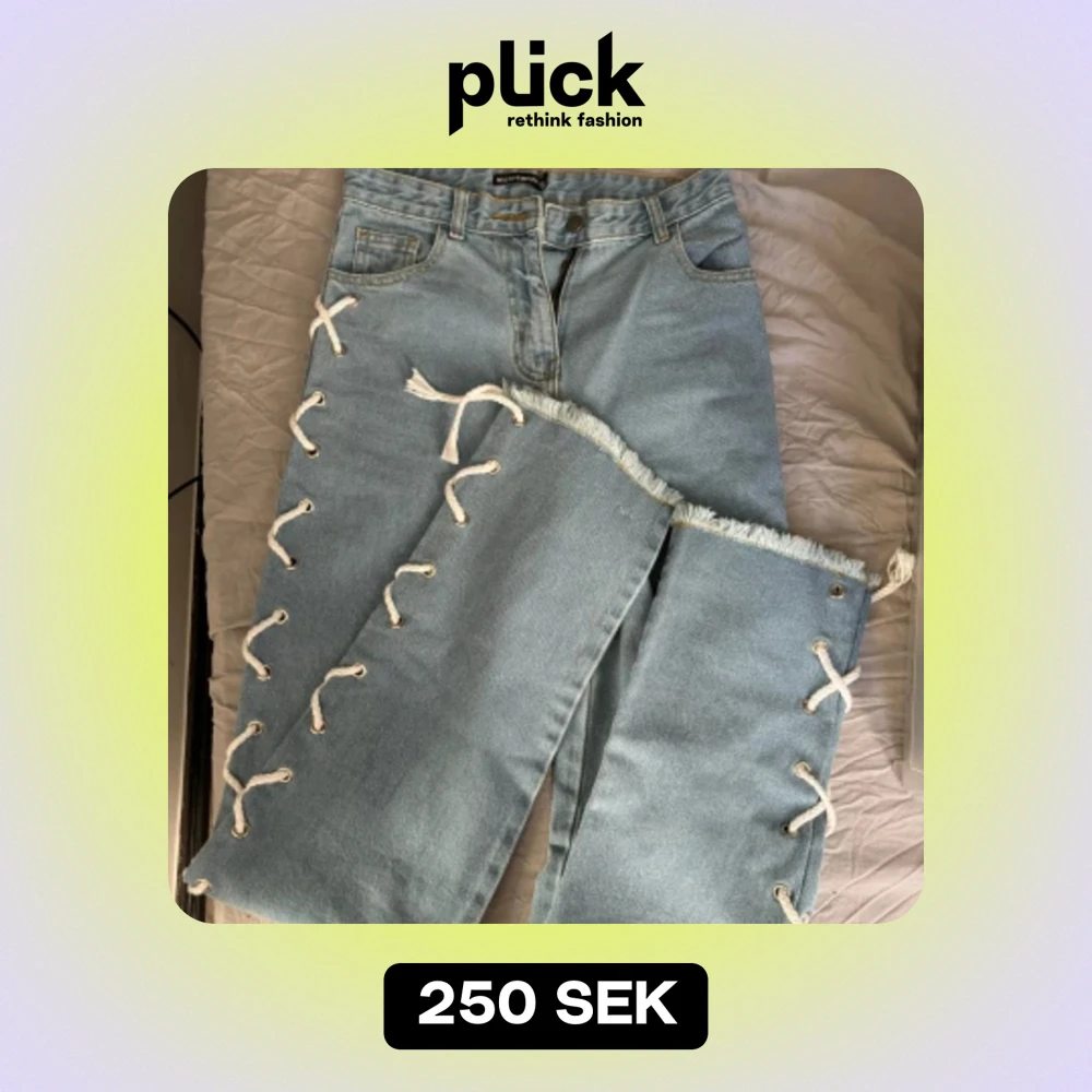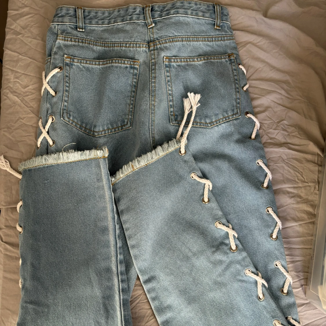 Aldrig använda, i storlek S, raka i benen med snörning på sidorna🩷