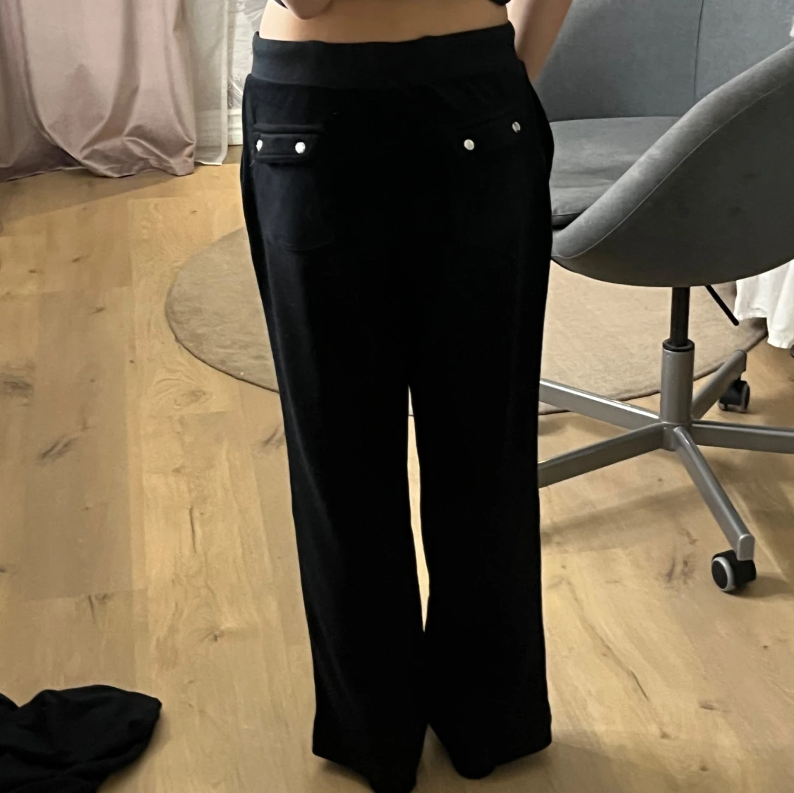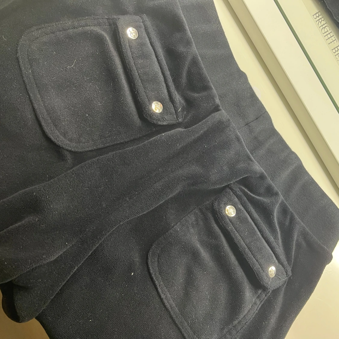 Snygga svarta juicy couture och fickor med knappar bak. Perfekta för en avslappnad stil. Använda typ 3 gånger. Kostade 800 kr när jag köpte dom. Dom är super mjuka och sköna! Hör av er vid intresse ☺️😍