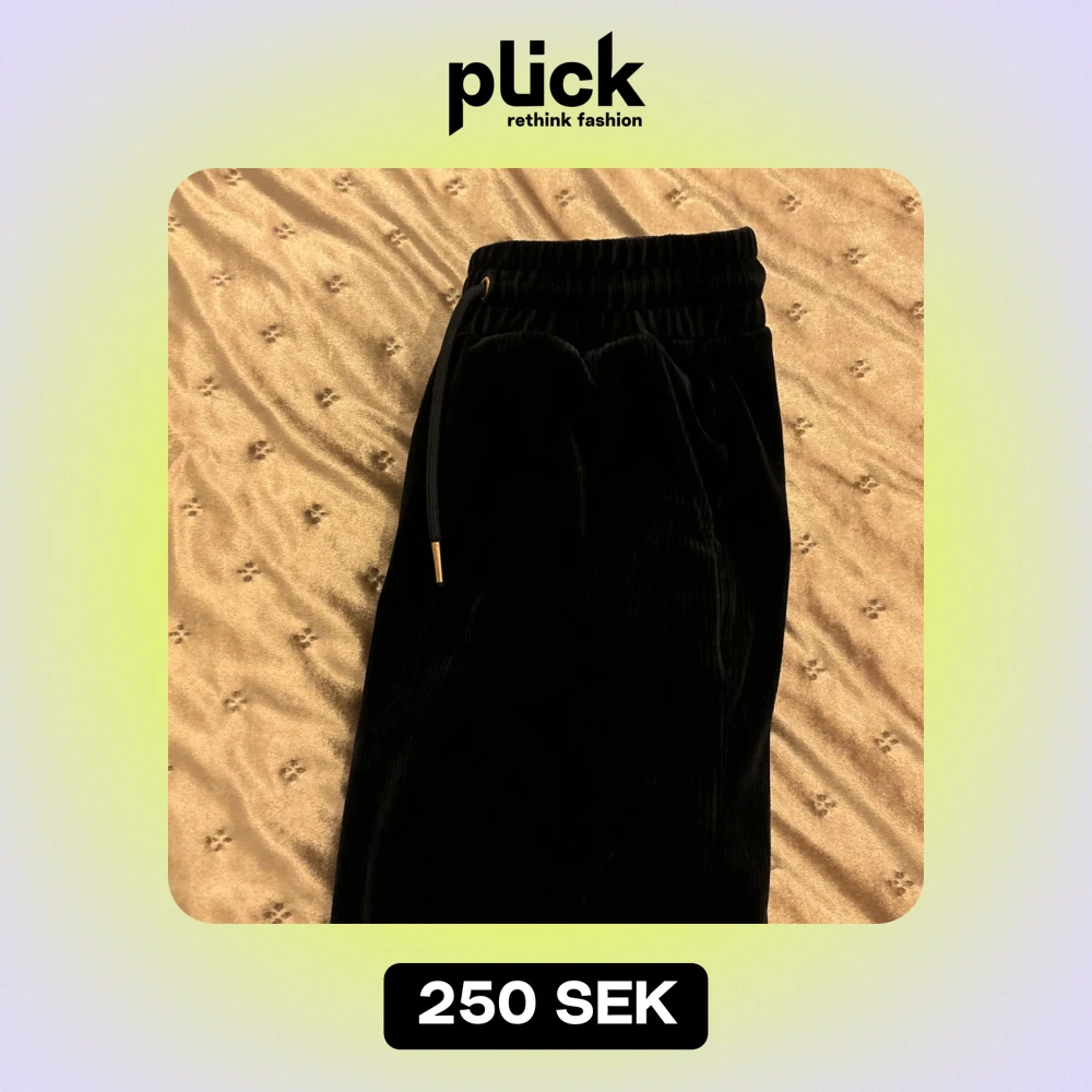 Säljer ett par svarta manchesterbyxor i mycket bra skick. De har en bekväm loose passform och är högmidjade med snörning i midjan. Perfekta för höst och vinter, och de är supermysiga att ha på sig. Passar både till vardags och lite mer avslappnade tillfällen.