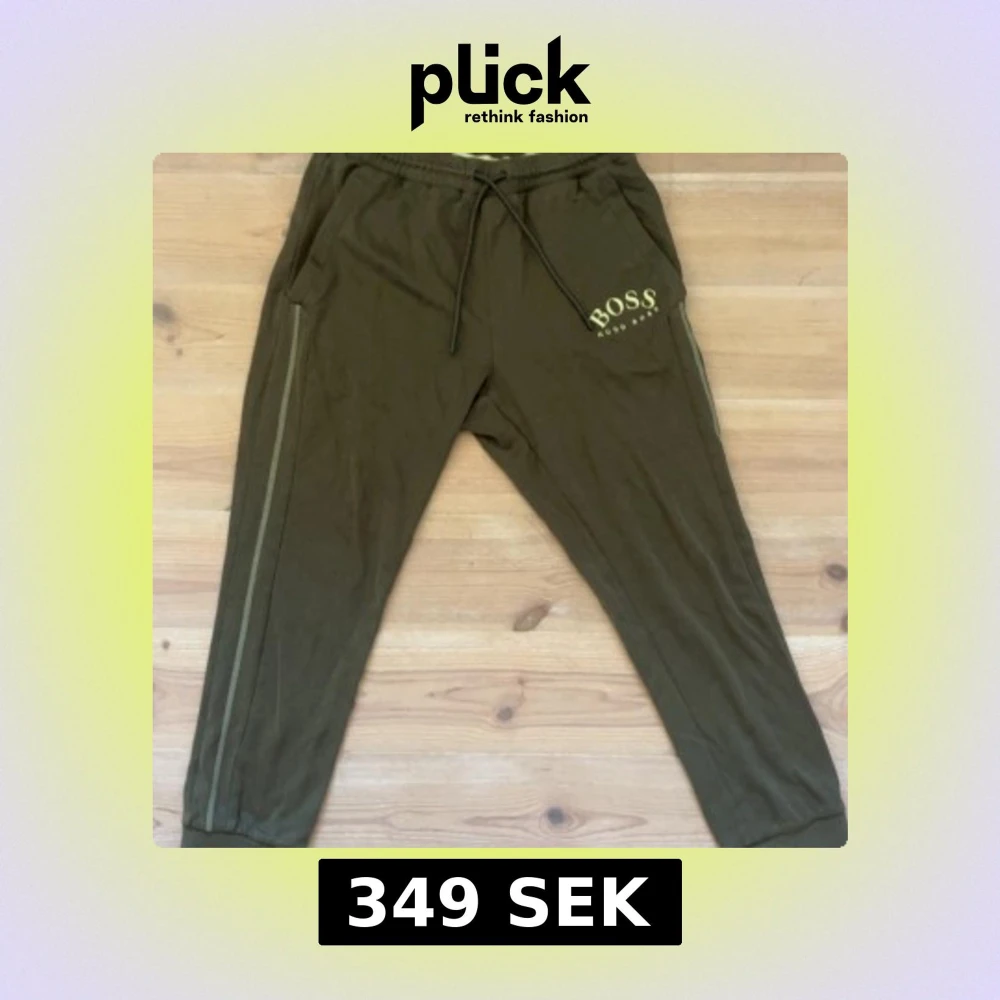 Mjukisbyxor från Hugo Boss med broderad logga på vänster sida. Byxorna har snörning i midjan, ribbade muddar vid bensluten och diskreta ränder längs sidorna. Tillverkade i mjuk bomull för maximal komfort och avslappnad stil.