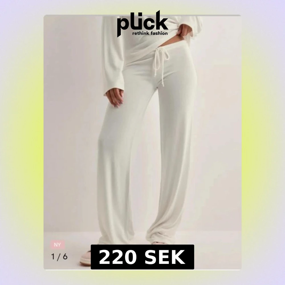 Supermjuka och sköna vita mjukisbyxor med breda ben och snörning i midjan. Nya utan prislapp! Använda 1 gång i storlek S💗