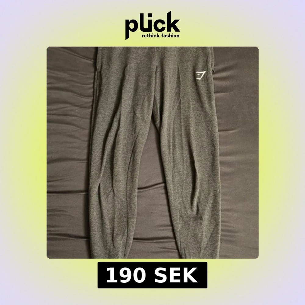 Säljer ett par mörkgrå mjukisbyxor från Gymshark i storlek XS. Byxorna har en diskret logga på låret och dragkedja vid benslutet. Perfekta för gymmet eller löpning.
