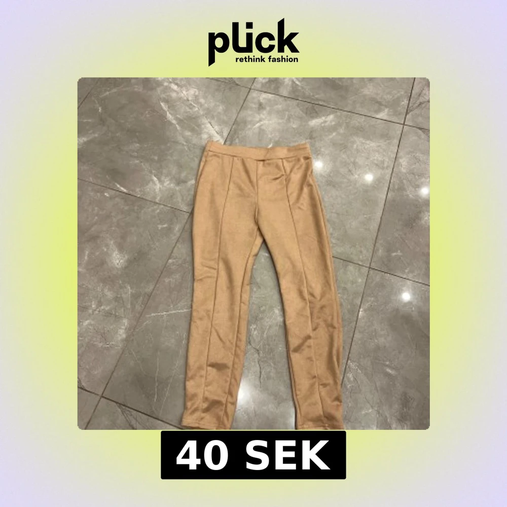 Säljer ett par beiga byxor från SHEIN i storlek L. De har en lagom hög midja och har ett mjukt mocka material på utsidan .Snygg söm framtill ger en extra detalj. Byxorna är helt nya!