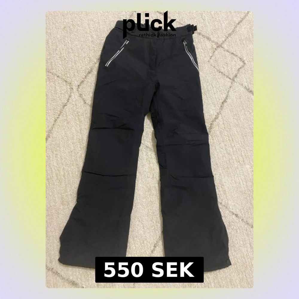 Svarta täckbyxor från Everest med två dragkedjeförsedda fickor fram och justerbar midja. Byxorna har en rak passform och är gjorda i slitstarkt syntetmaterial, perfekta för kalla dagar. Reflekterande detalj på baksidan av benet för extra synlighet. Använd få gånger köptes för 600💕 kom med pris förslag!!!!😊😊😊😊😊