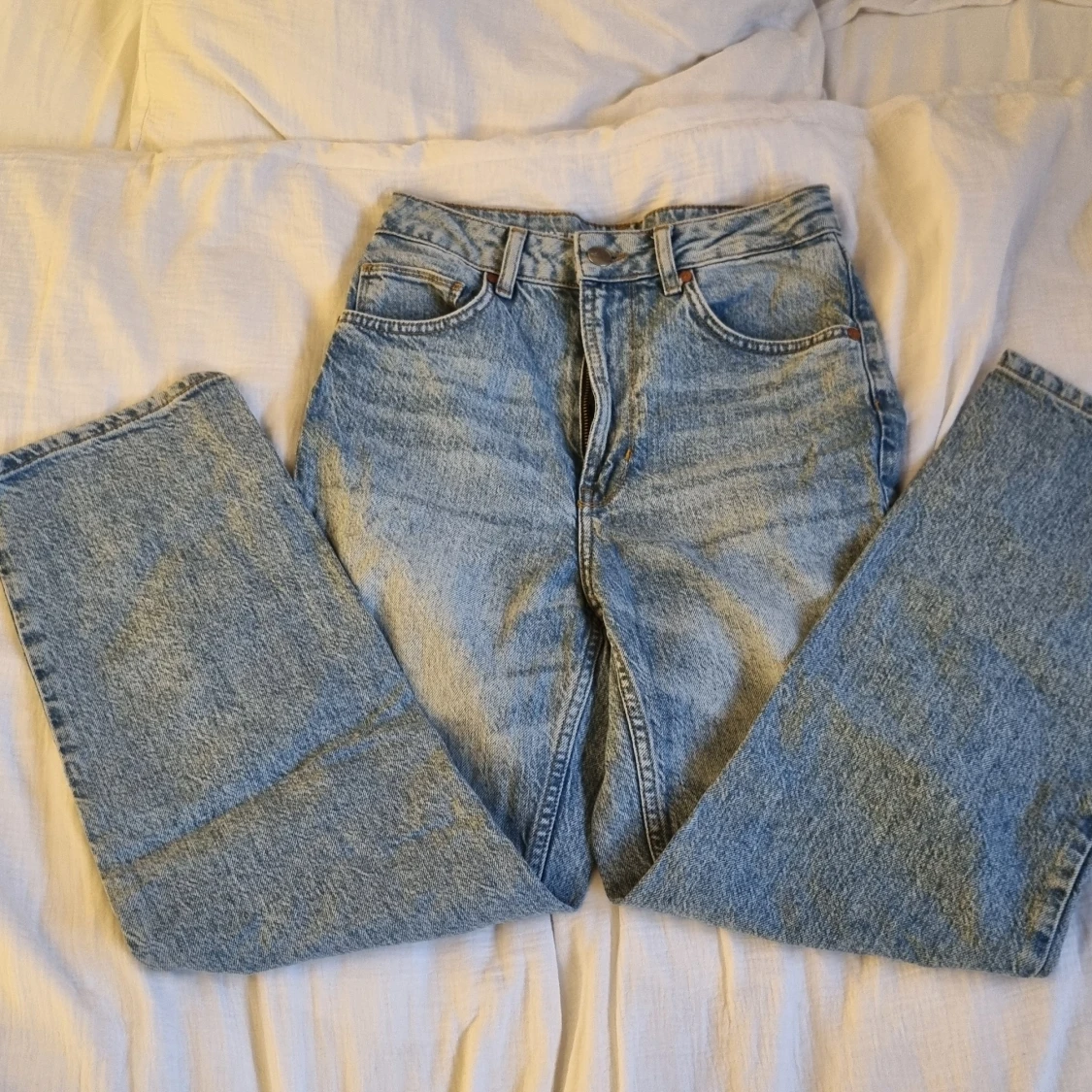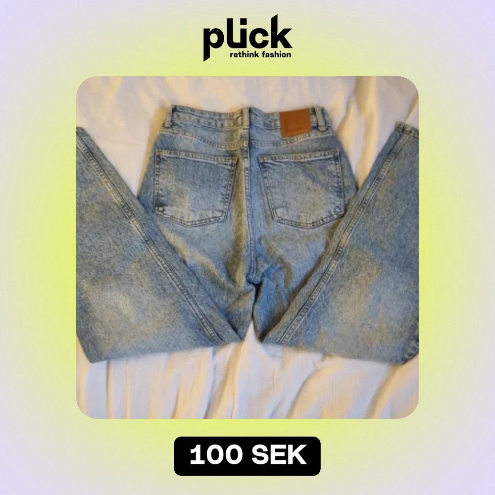 Blåa momjeans från bikbok, men köpta på Carlings. Längd: 32, midja: 28. Lite stretch. Dragkedja och knapp.