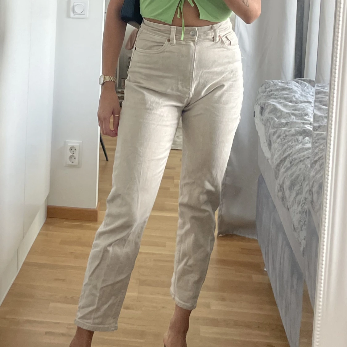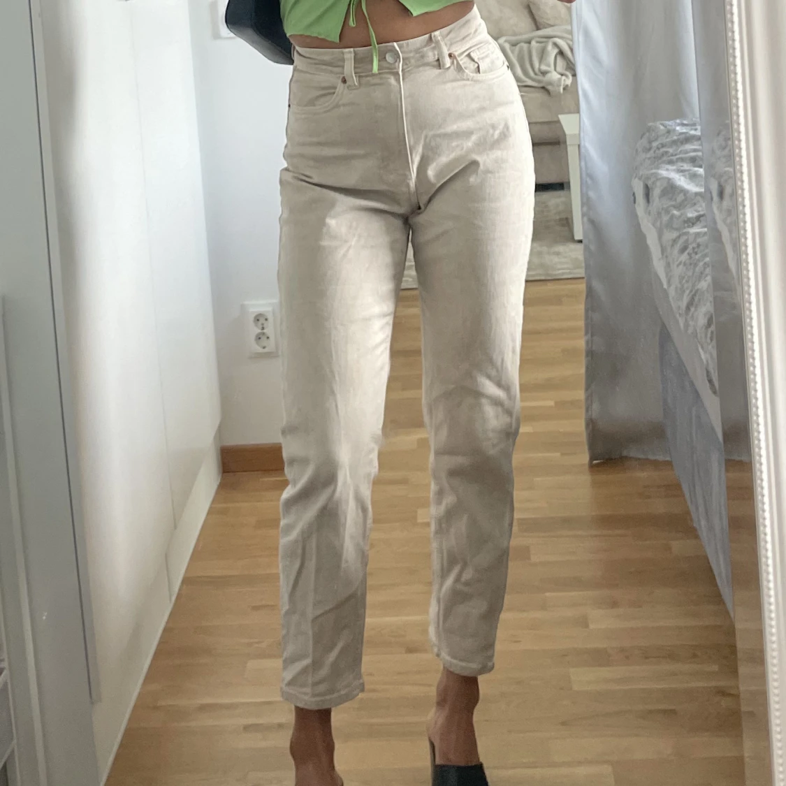Sköna och snygga (momjeans) men tyvärr för små på mig. Skulle säga att detta är en liten 36a! Sparsamt använda.