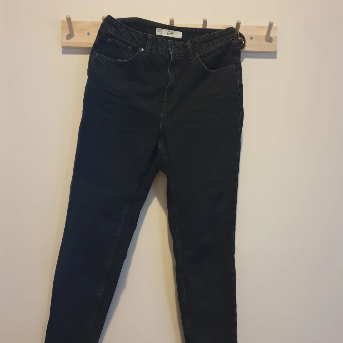 De perfekta mom jeansen från Topshop! Helt oanvända. De är i storlek waist 28 och längd 30. Säljes då jag tyvärr råkade köpa fel storlek. Frakt står köpare föe.