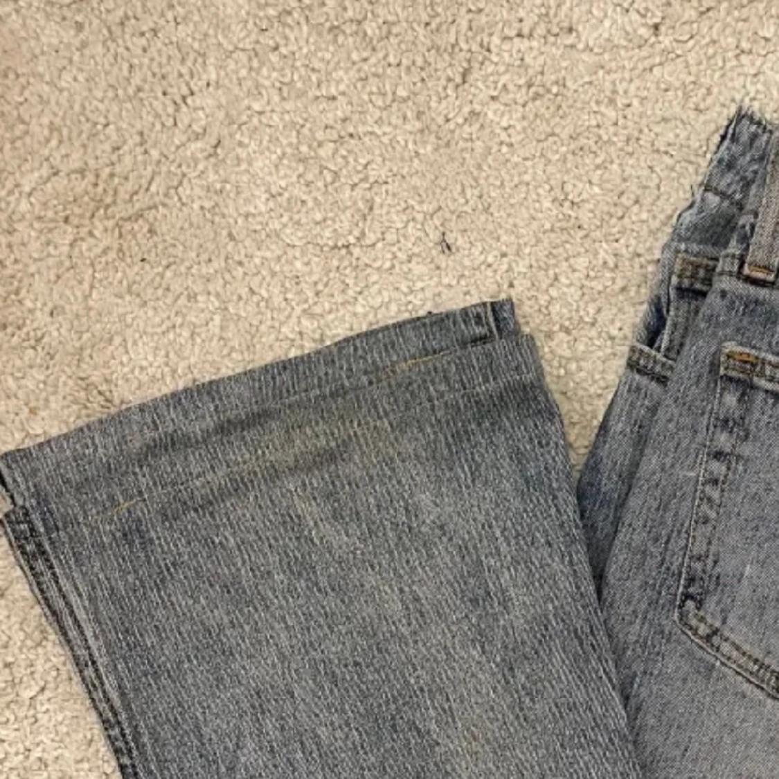 Säljer mina jeans som jag aldrig använder❤️ köptes i somras i New York💕 uppsydda så de passar 160-167 typ waist:74 cm skriv till mej innan ni trycker på köp nu!!! One size