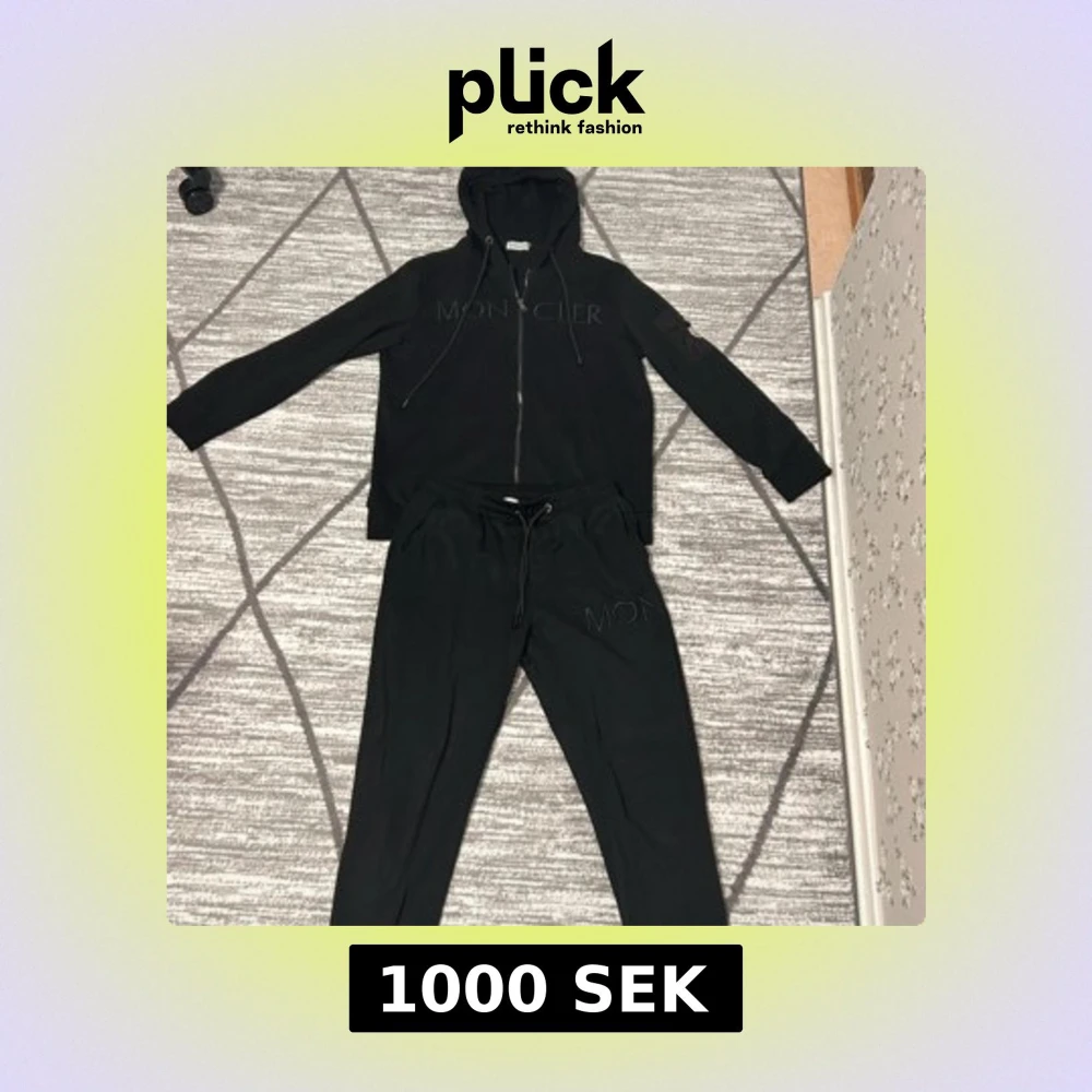 Säljer ett par svarta mjukisbyxor från Moncler med dragsko i midjan och en ficka med Moncler-logga bak. Byxorna har en normal passform och är perfekta för en avslappnad stil. Funkar även Storlek L-M