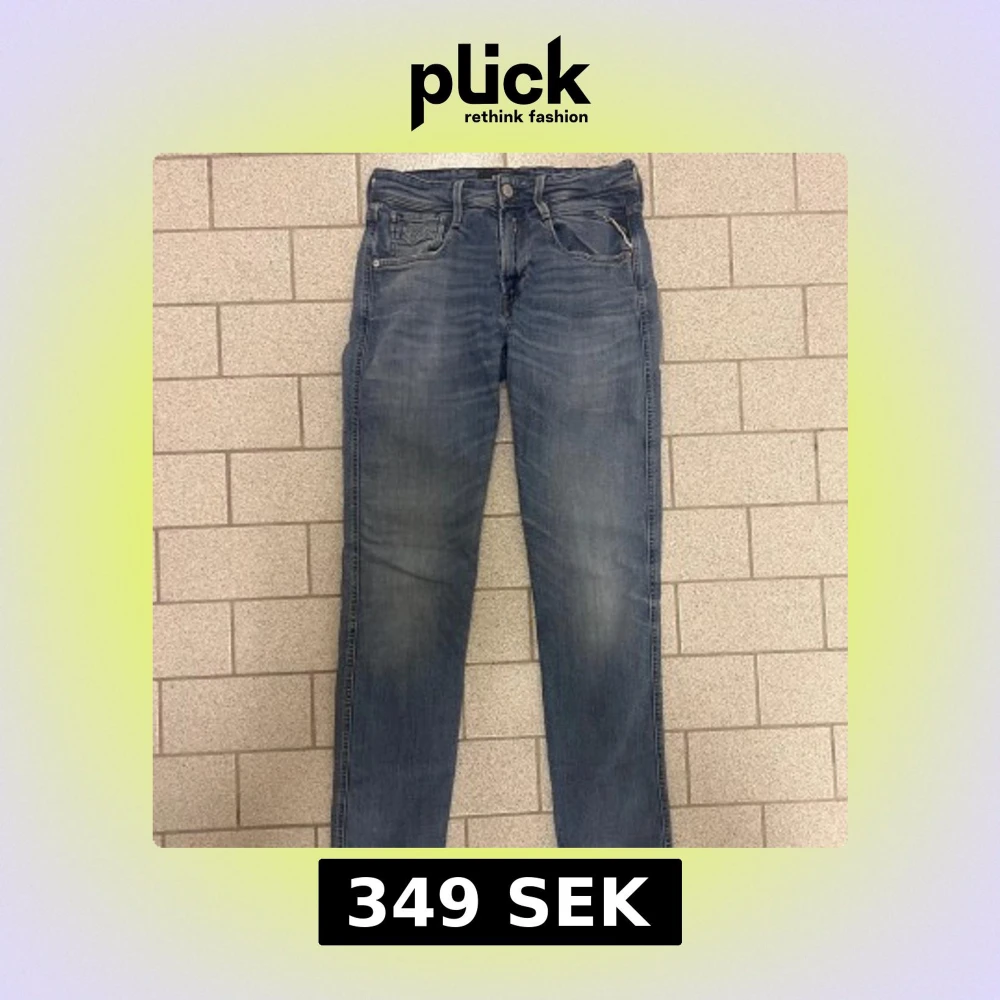 Otroligt stilliga replay anbass jeans i storlek 29/34. (Defekter där av priset se de sista två bilderna). Defekt 1, liten vit slitning vid gylfen längs ned. Defekt 2, lappen av.