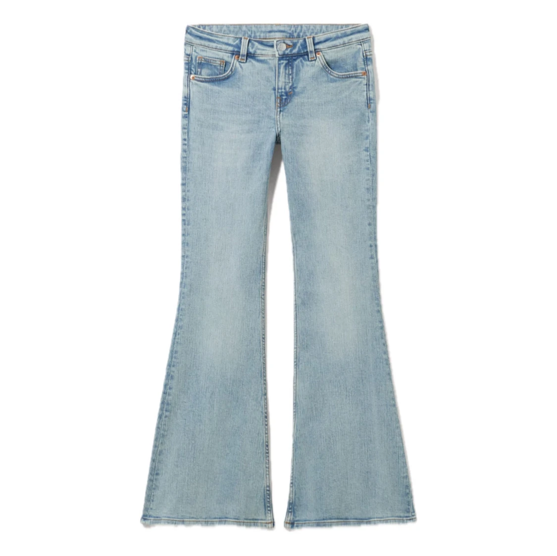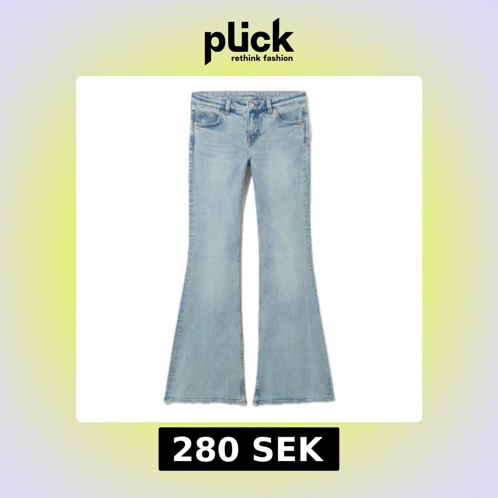 Säljer ett par ljusblå jeans med snygg bootcut och låg midja från monki💕💕💕 originalpris 500kr och helt slutsålda‼️storlek w23 och L32