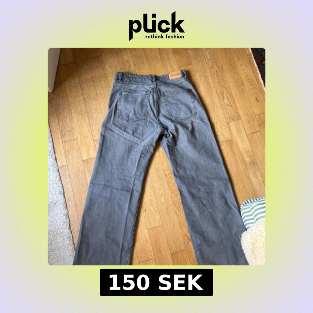 Säljer ett par grå jeansbyxor från Monki i rak modell. Byxorna har klassisk femficksdesign, hällor för bälte och knapp- samt dragkedjestängning. Perfekta för dig som gillar en enkel och clean look.