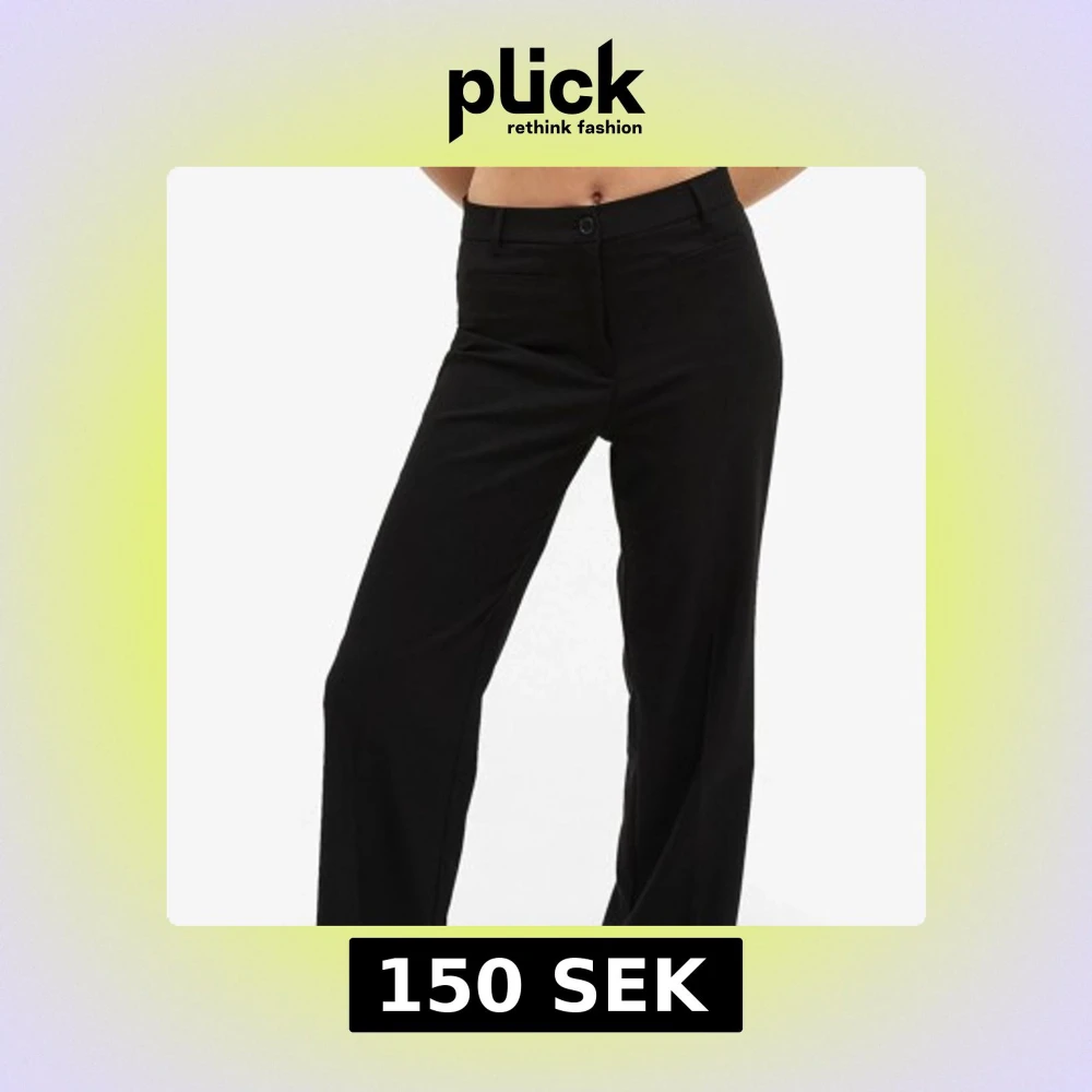 Snygga svarta kostymbyxor med raka, vida ben och klassisk midja. Byxorna har diskreta fickor fram och stängs med knapp och dragkedja. Perfekta för en clean och stilren look.