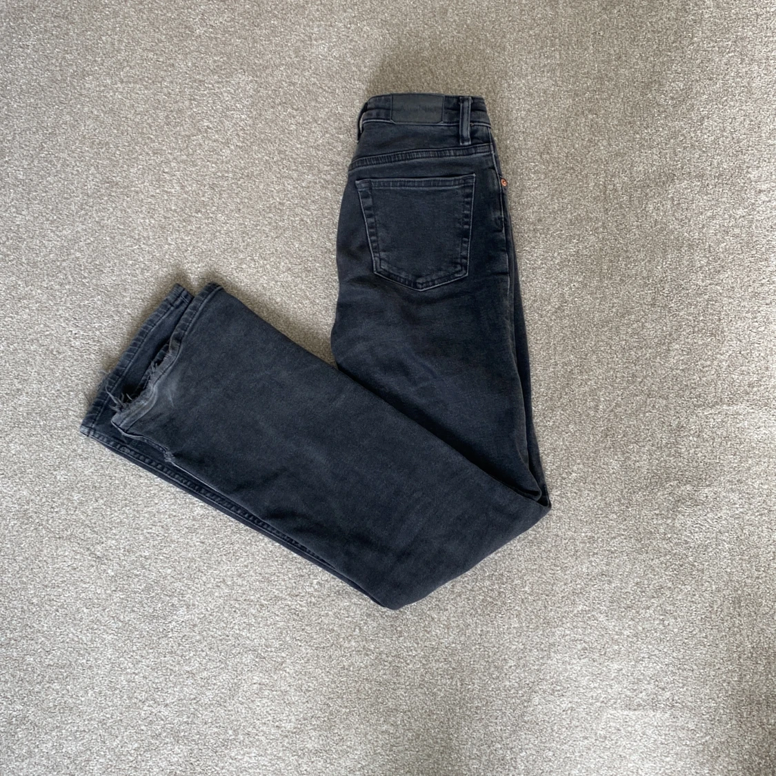 Säljer dessa jätte gulliga jeans från monki bra skick lite slitna längs nere på jeansen ser inte storleken men gissa på att de är storlek 34💕