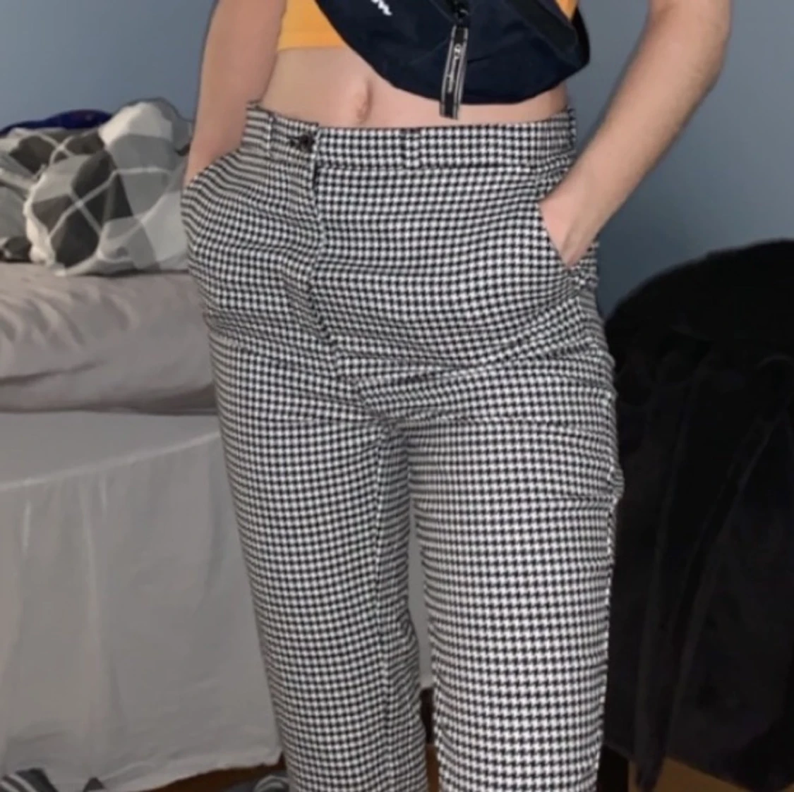 Raka rutiga byxor. Säljer då de blivit för korta för mig. Jag har sytt in dem i midjan då de var för stora men det går lätt att sprätta upp. Sparsamt använda.